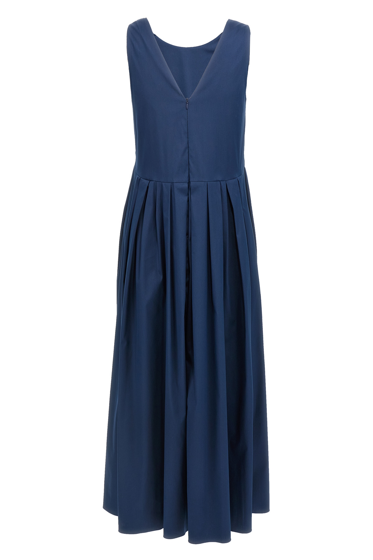 Long 'Moira' dress in stretch cotton poplin with flared silhouette with pleated skirt, American-neckline, sleeveless, pockets, back zip closure.