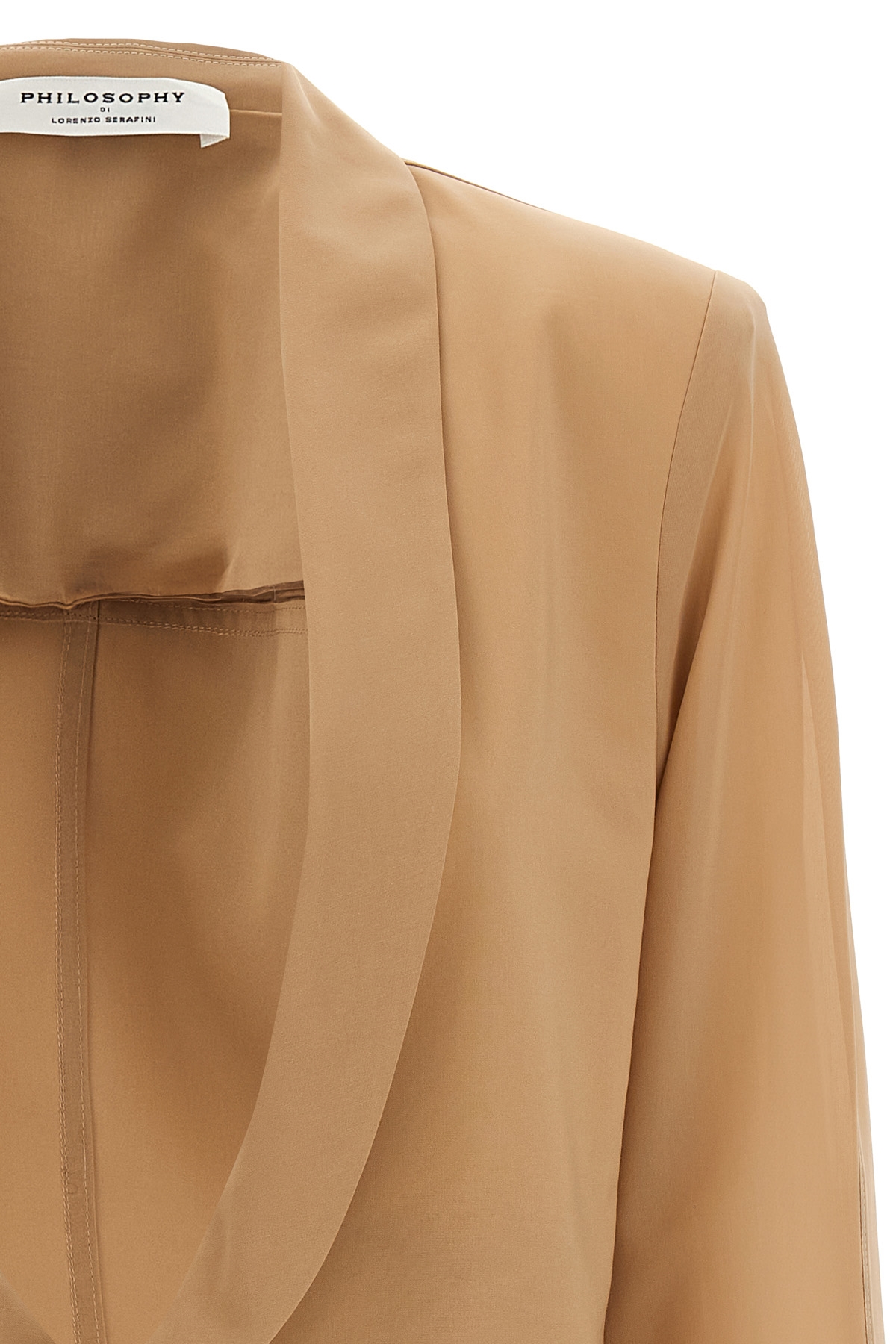 'Etamine' blazer in unlined cotton blend, slightly transparent, slightly loose fit, plunging neckline, button closure, long sleeves.