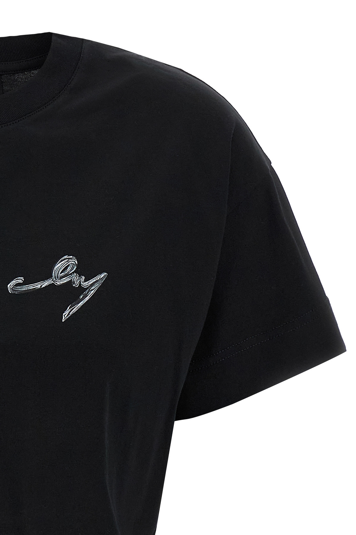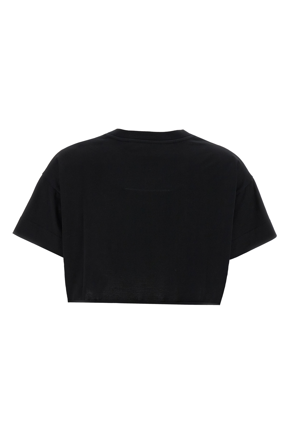 Cotton T-shirt with front logo print, crew neck, cropped style with raw cut on the hem, short sleeves.
