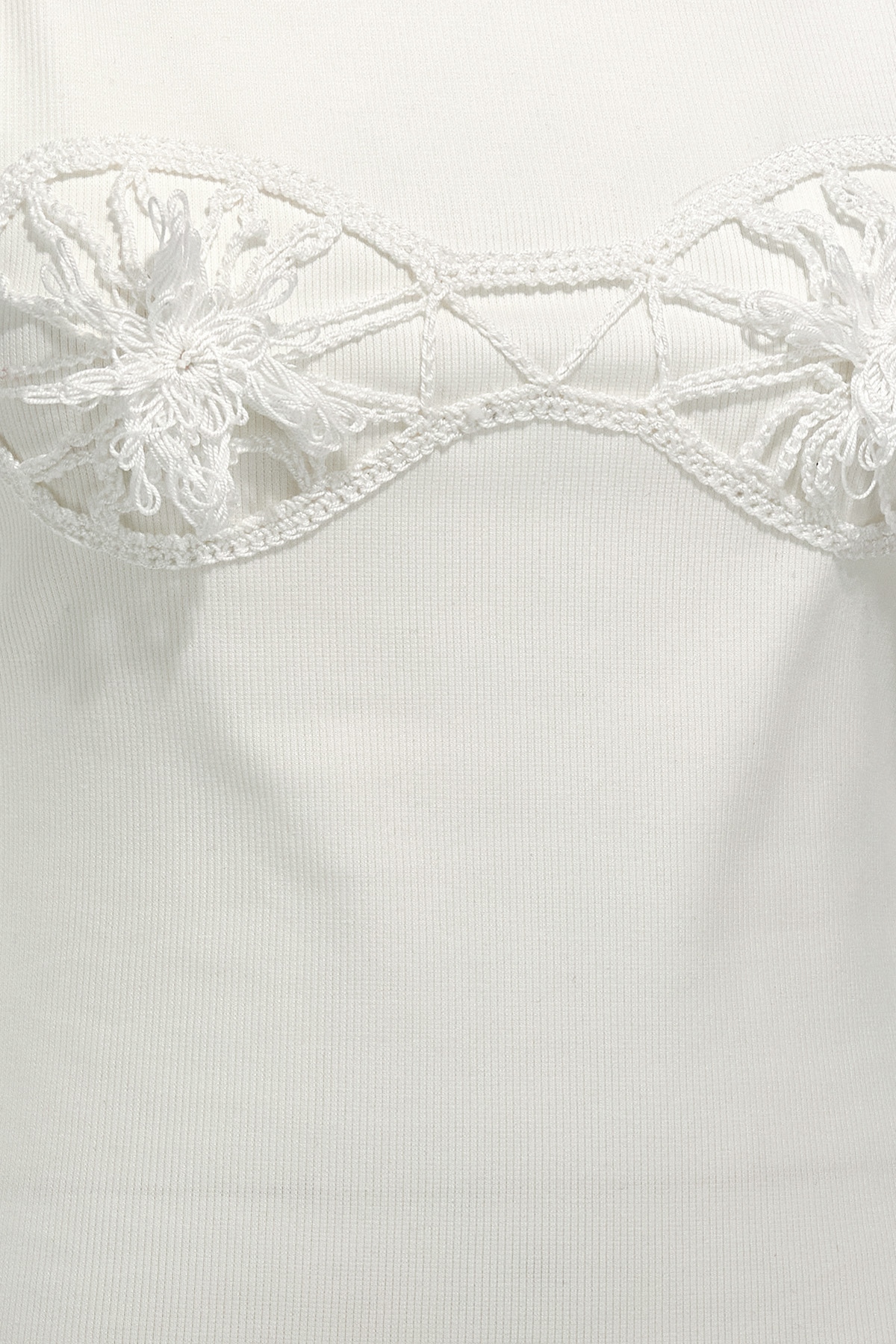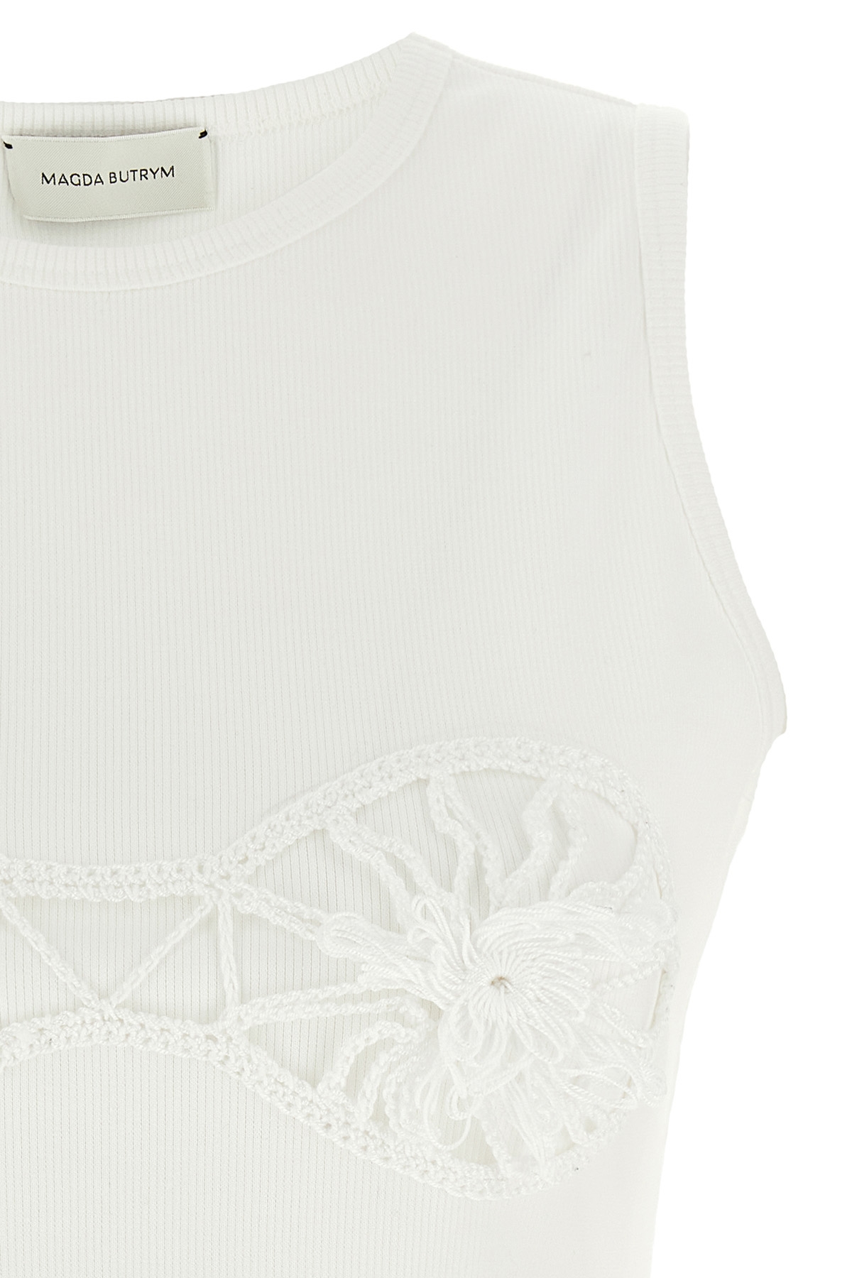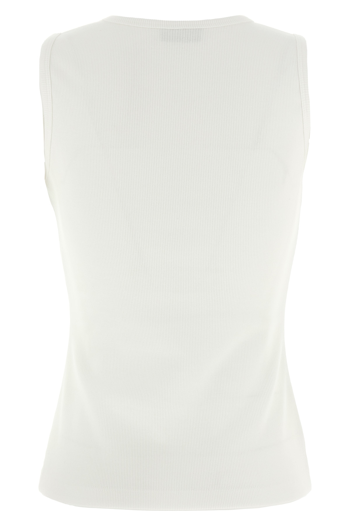 Ribbed stretch cotton top with crew neck, tone-on-tone bras front detail, sleeveless.