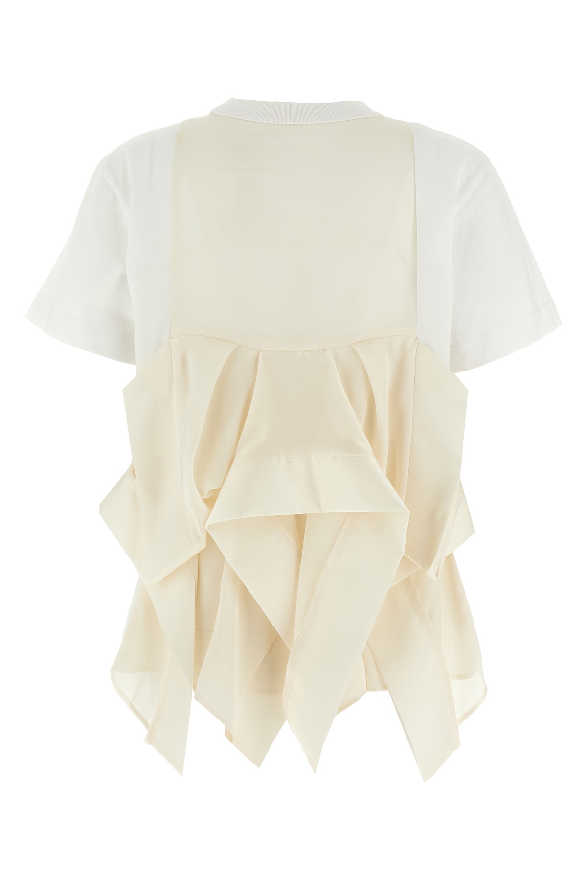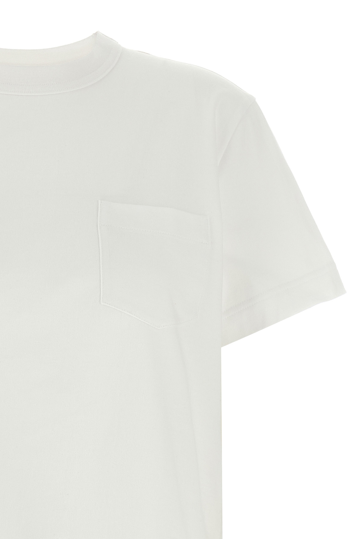 Cotton jersey crew neck t-shirt, front pocket, back flounces, asymmetrical length.