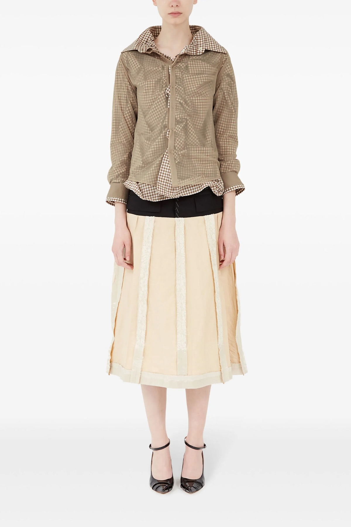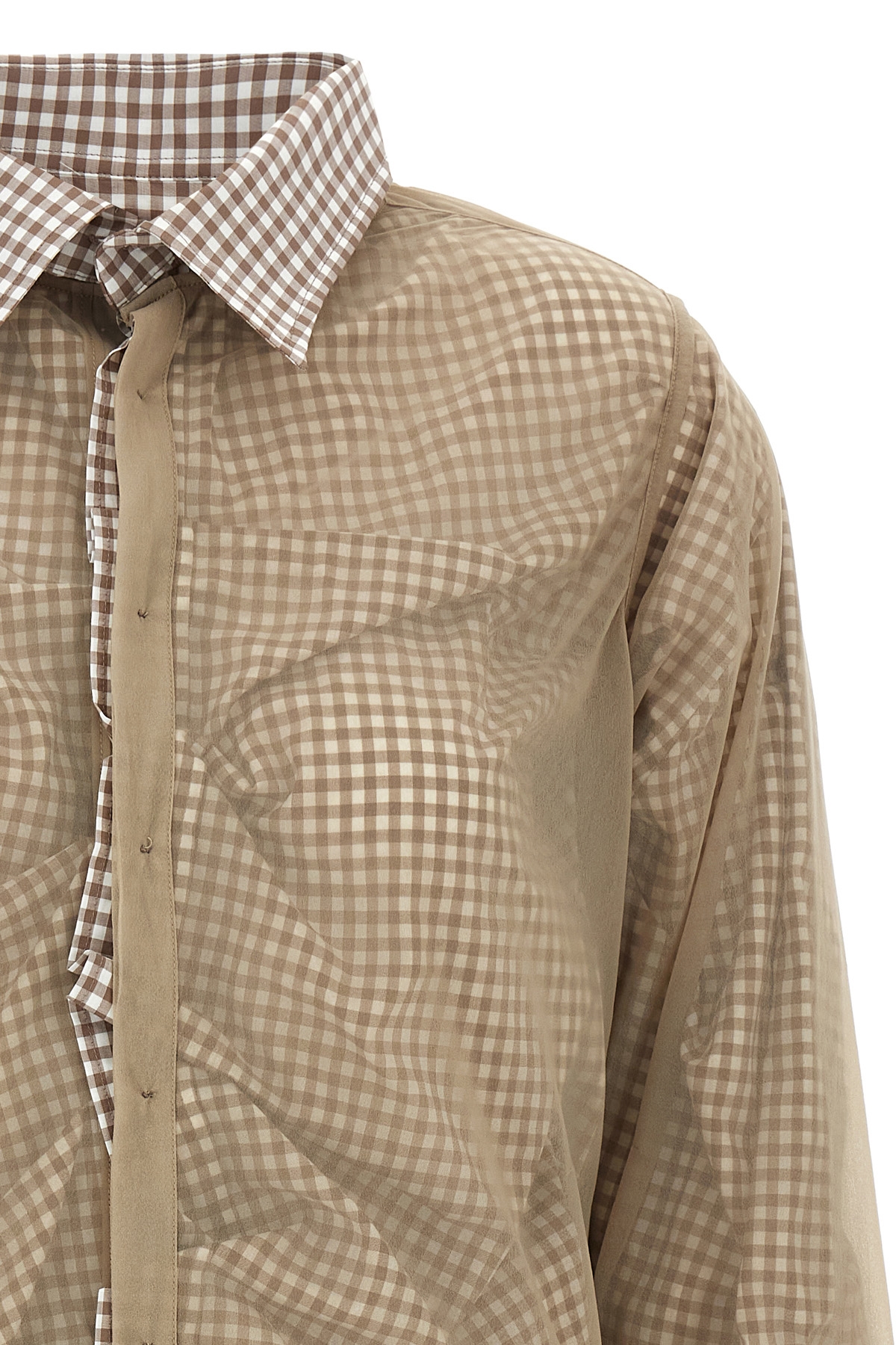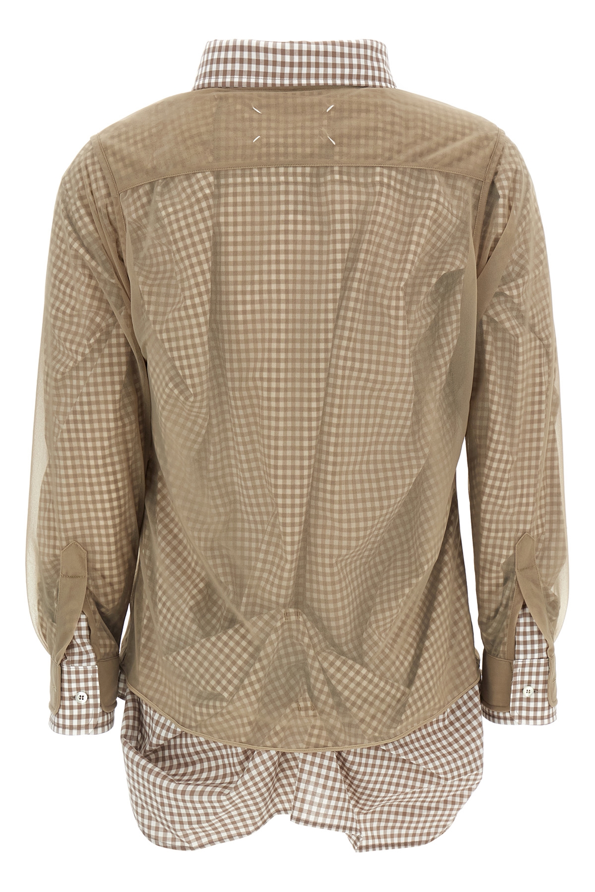 Multi-layer shirt in check print cotton and semi-transparent fabric, front button closure, long sleeves with cuffs.