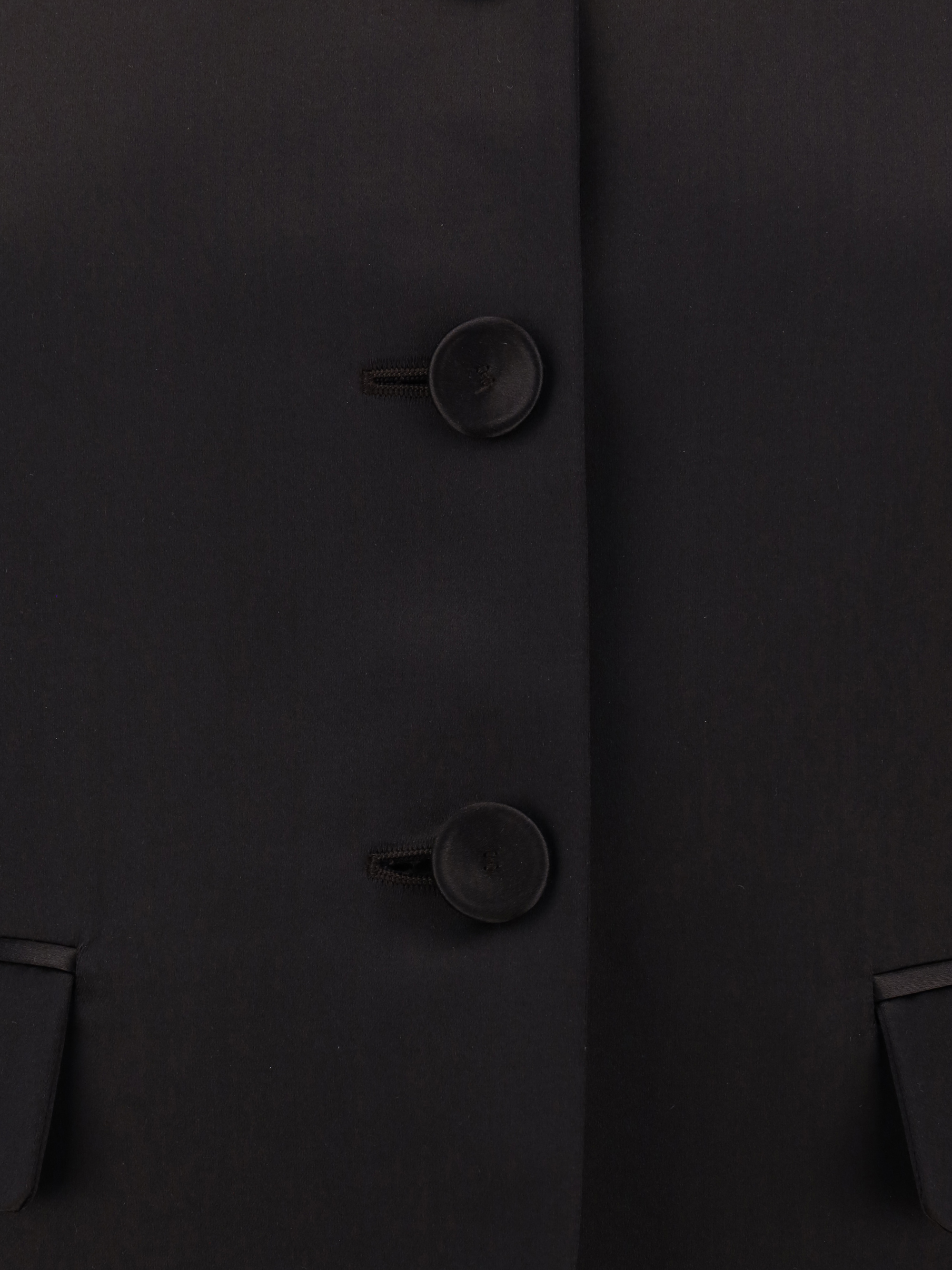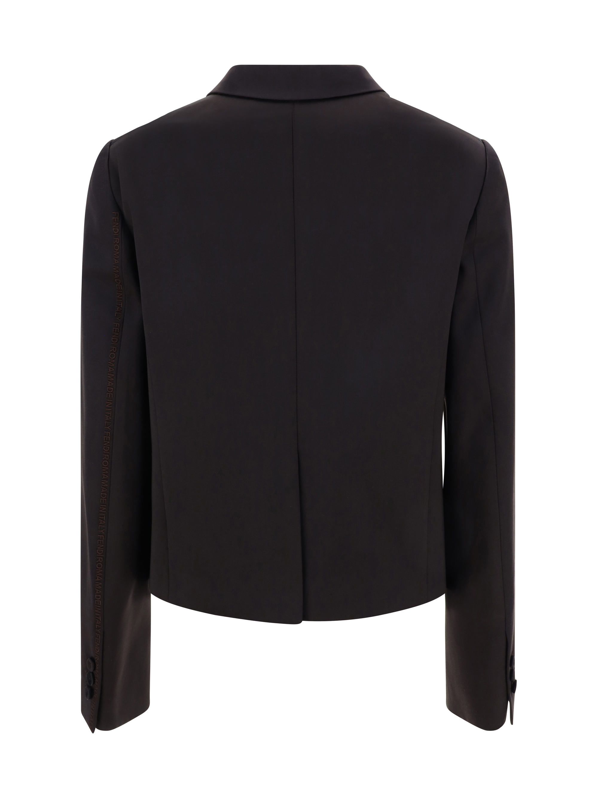 Cotton Blazer Jacket by Fendi, front button fastening with matching buttons, slight classic lapels, two welt pockets with side flaps, one front welt pocket, back vent, structured shoulders, satin finish, iconic tone-on-tone embroidered brand monogram on left sleeve, regular fit.