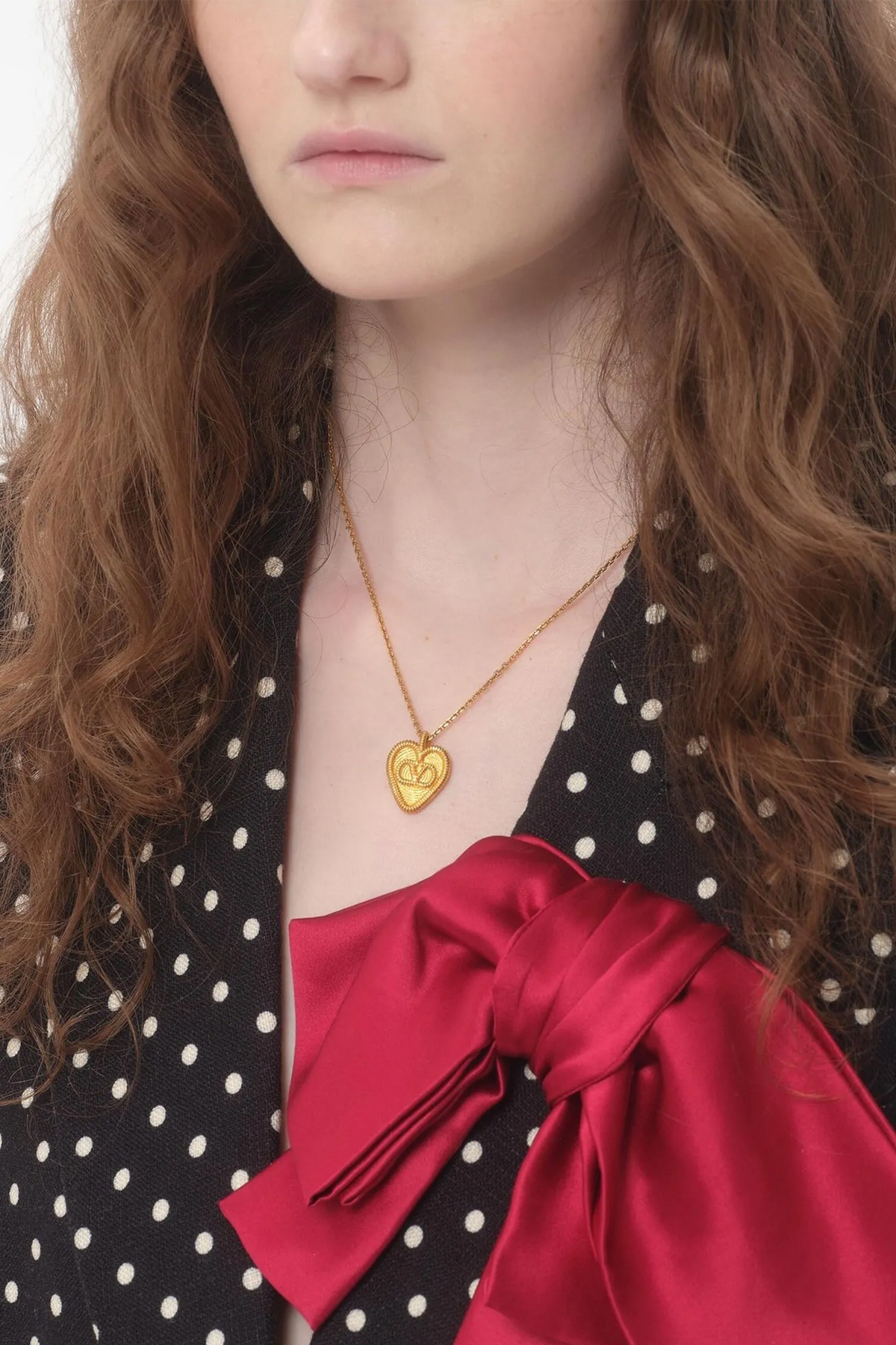 'Fil Perdu' necklace in metal with antique finish, pendant with heart-shaped pattern with hammered pattern and VLogo Signature detail, adjustable snap hook closure.