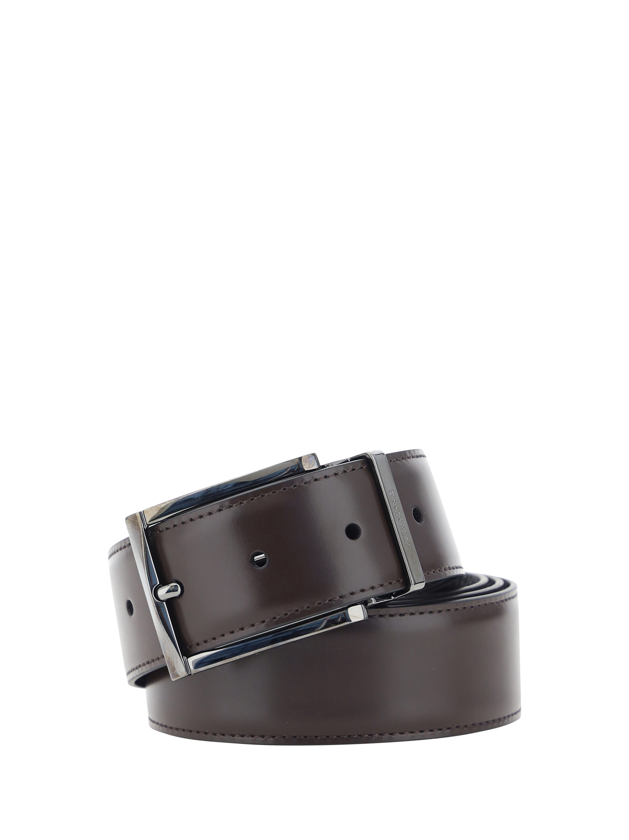 Calfskin Paloma Belt by Ferragamo, rectangular metal buckle, smooth leather design. Thickness: 3 cm.