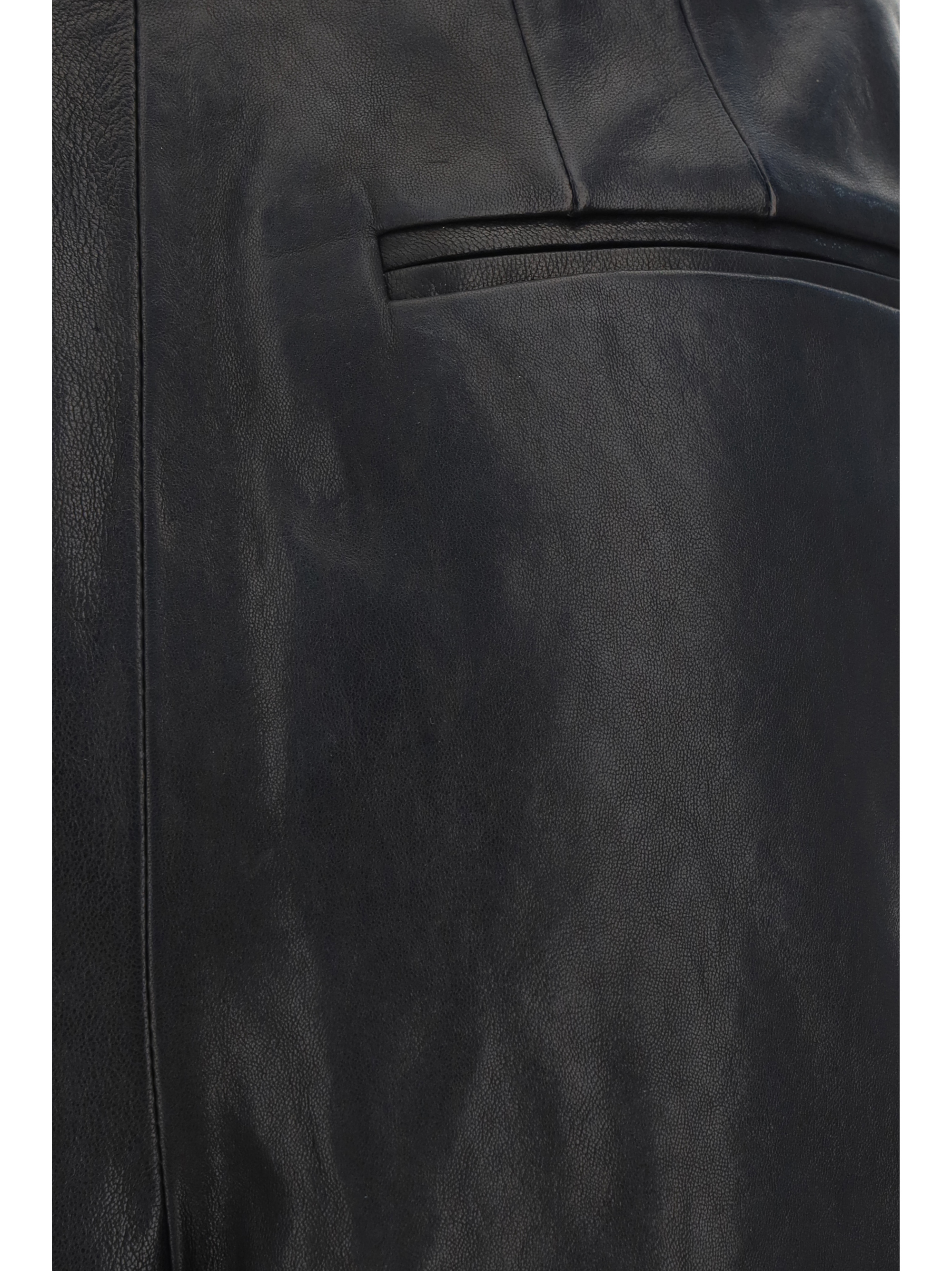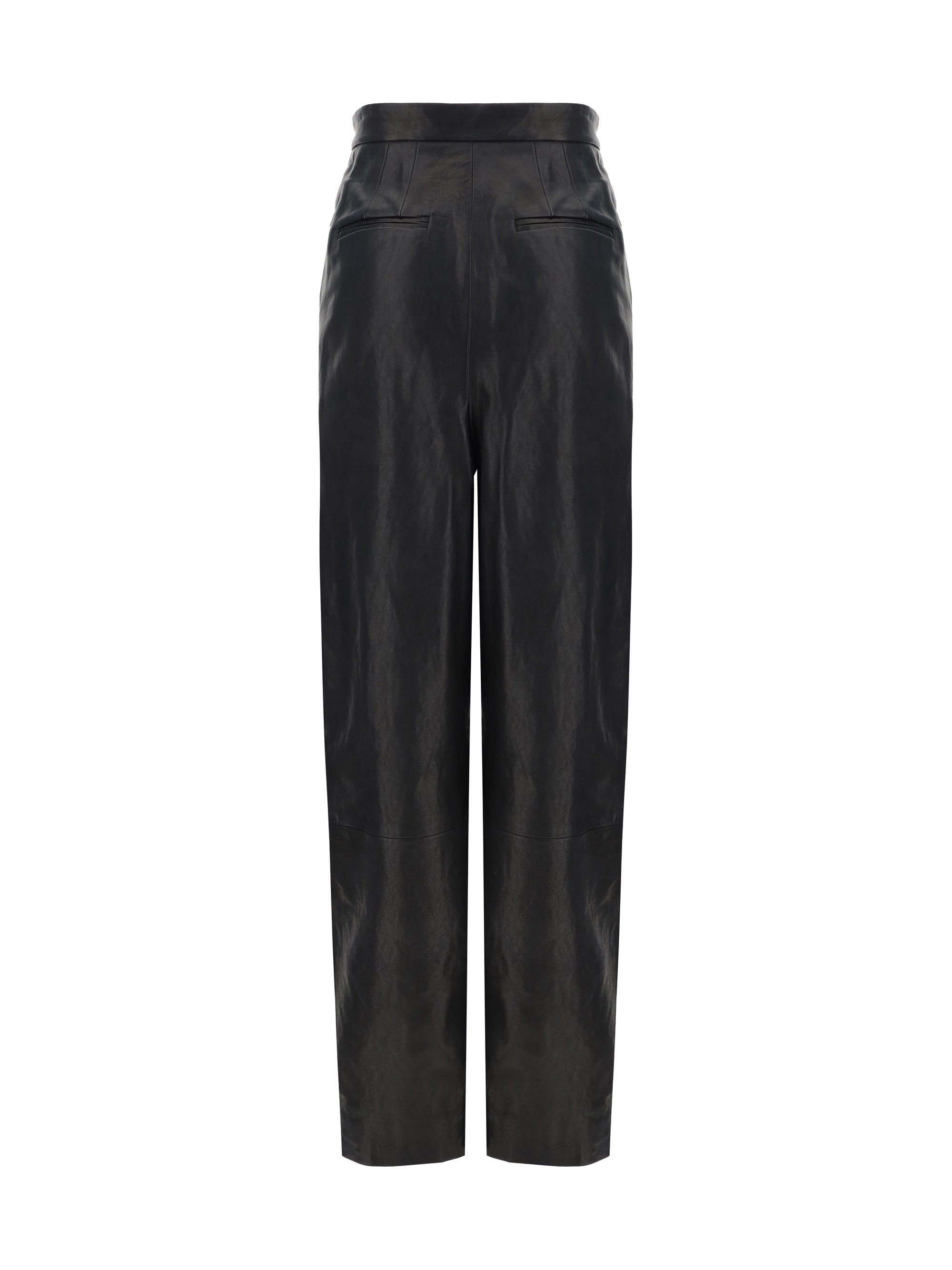 Lambskin Ashford Pants by Khaite, wide-leg pattern, front button and zipper closure, two side slash pockets, two welt pockets on back, waistband loops, monochrome pattern, regular fit.
