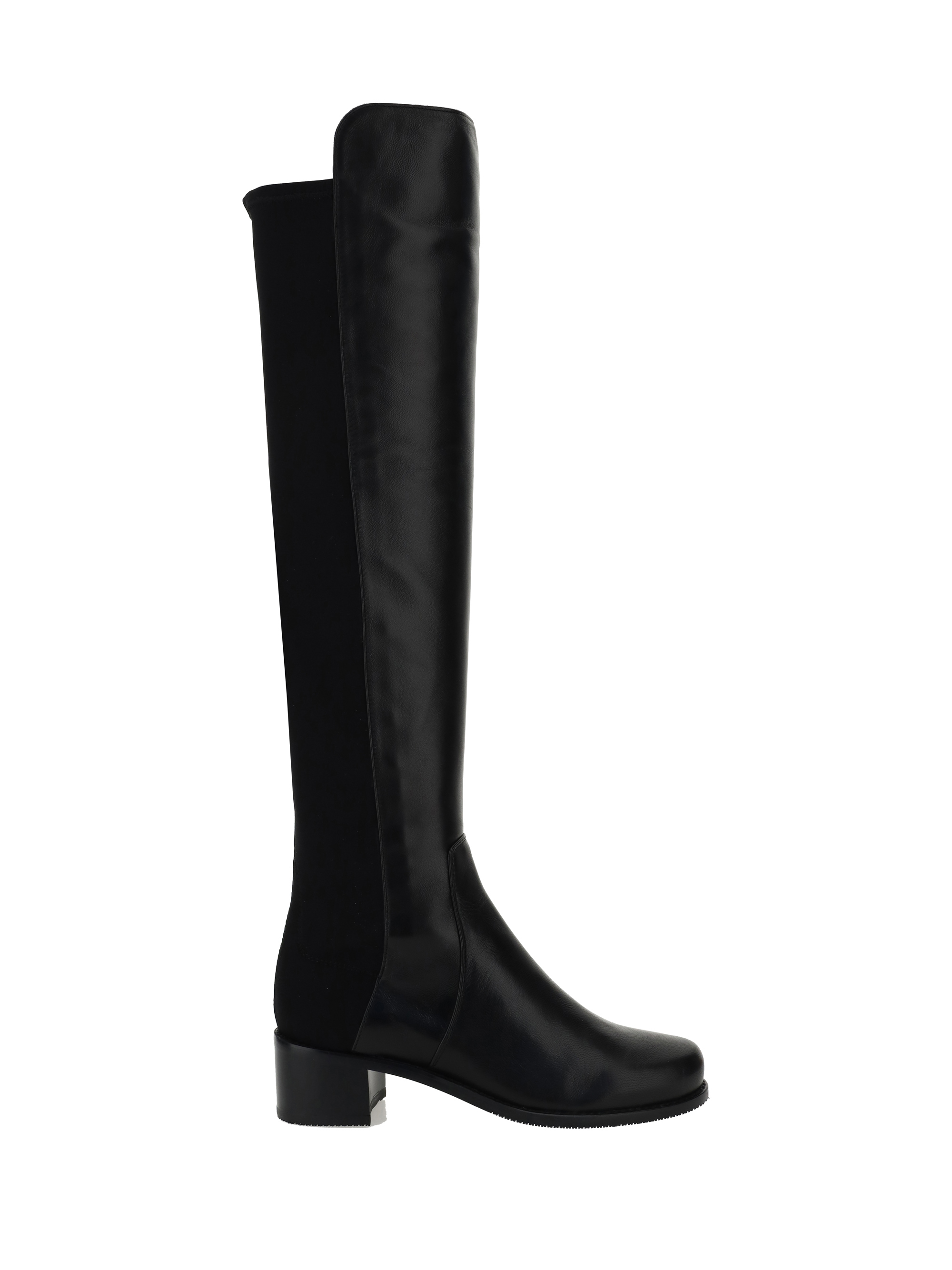 Leather Reserve Boots by Stuart Weitzman, featuring a round toe, an ankle height, an elasticated band at the back, a knee height.