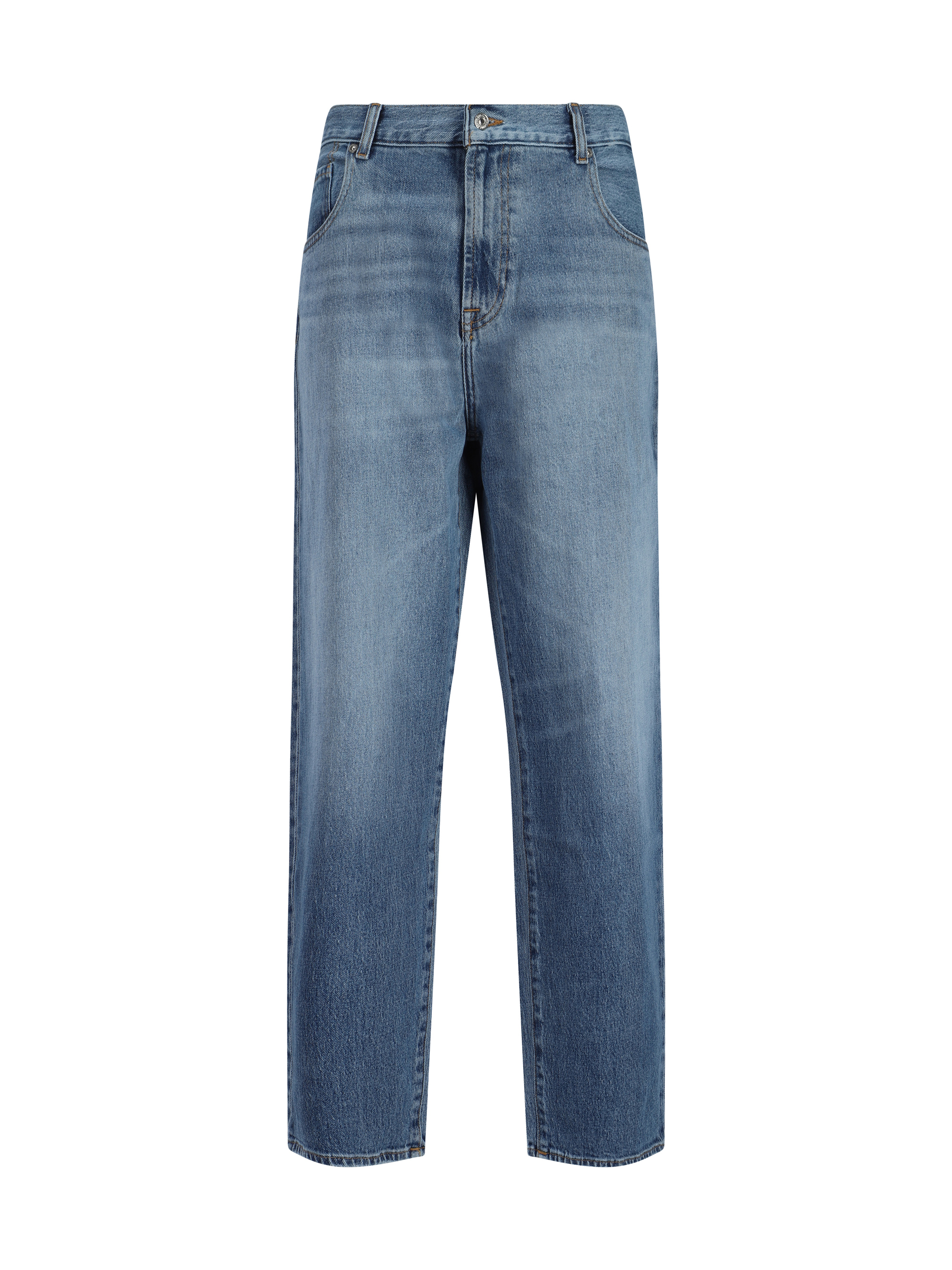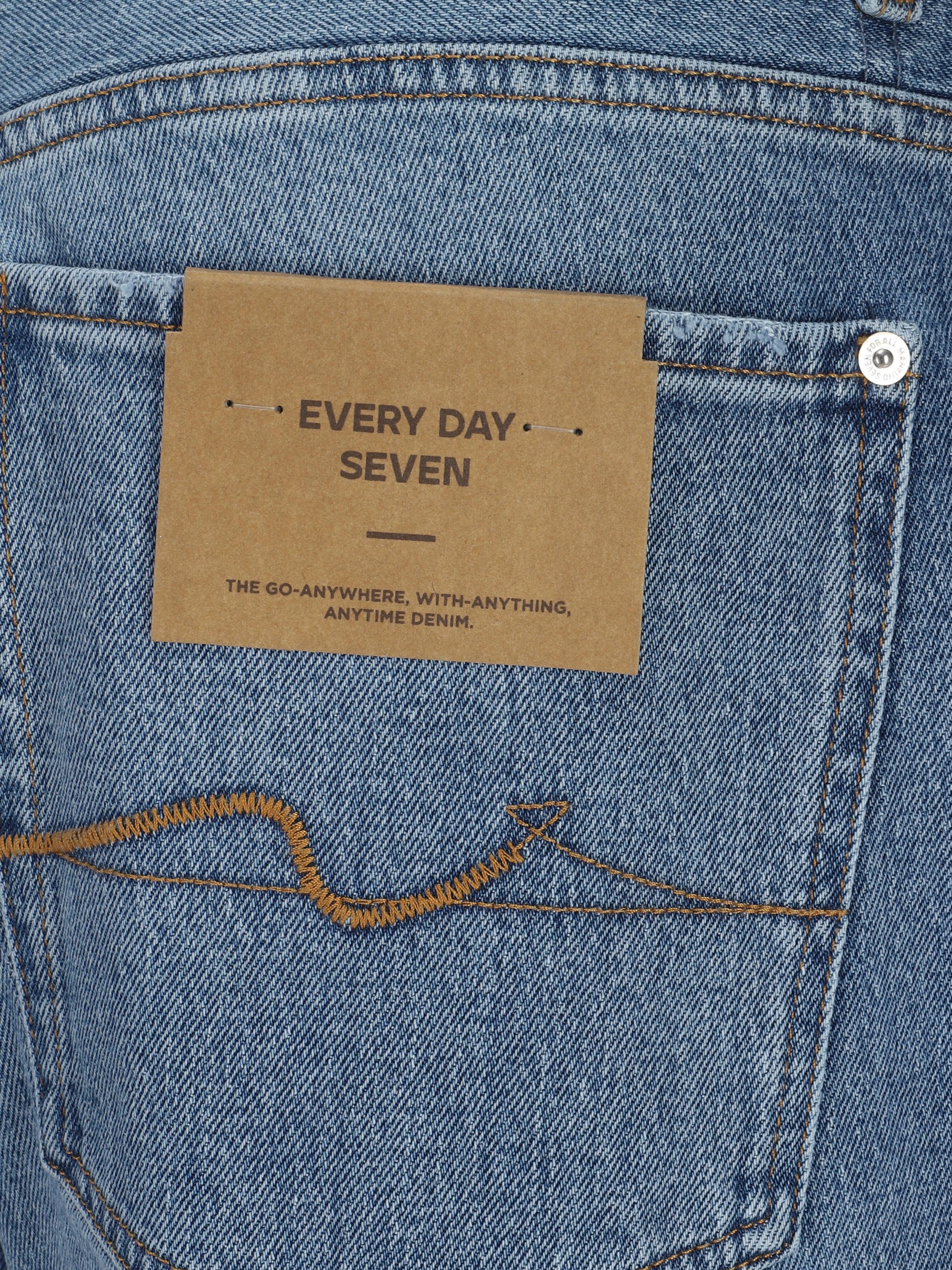 Cotton Ryan Jeans by 7For, five-pocket styling, front button and zipper closure, belt loops waistband, iconic leather patch with brand signature pressure-printed applique on back.