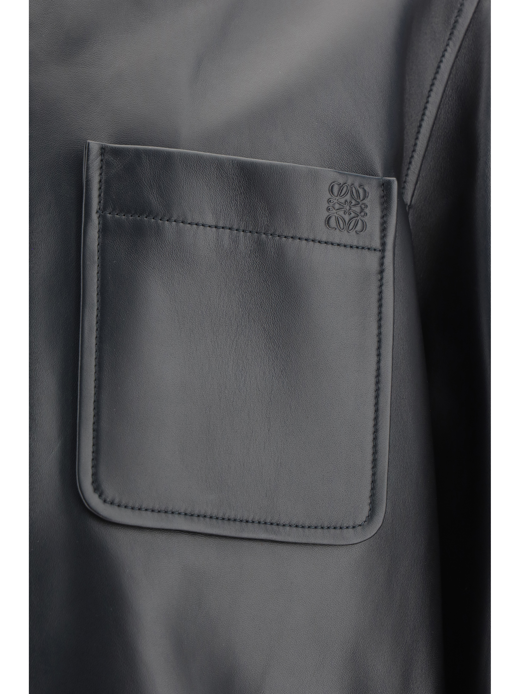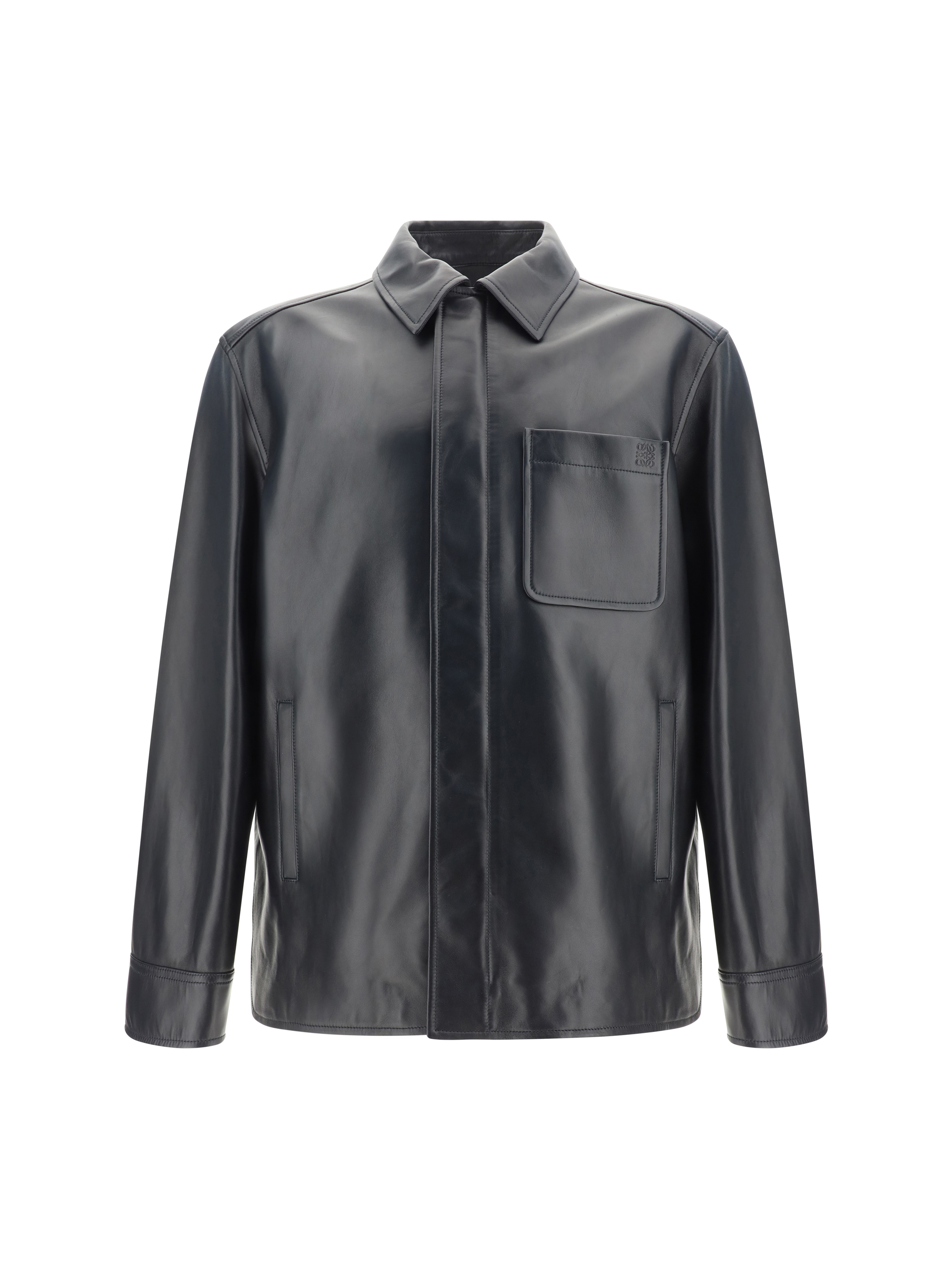 Lambskin Shirt by Loewe, classic collar, front button closure, one slit pocket attached to the front, monochrome pattern, regular fit.