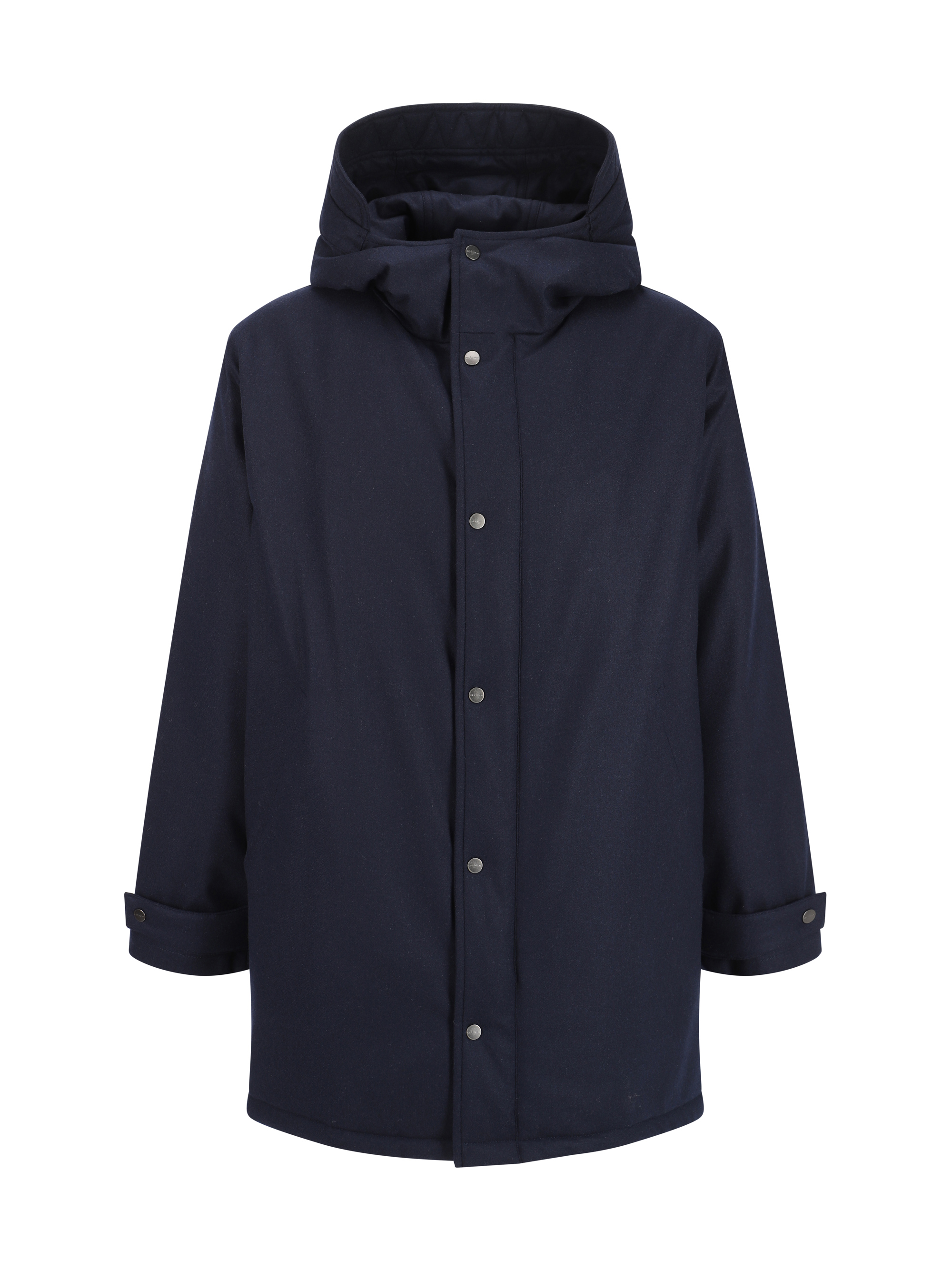 Cashmere Down Jacket by Kiton, hooded design, internally padded design fastens with a double-slider zipper and button flap, two side welt pockets, button-adjustable cuffs, monochrome pattern, back slit, straight hem, regular fit.