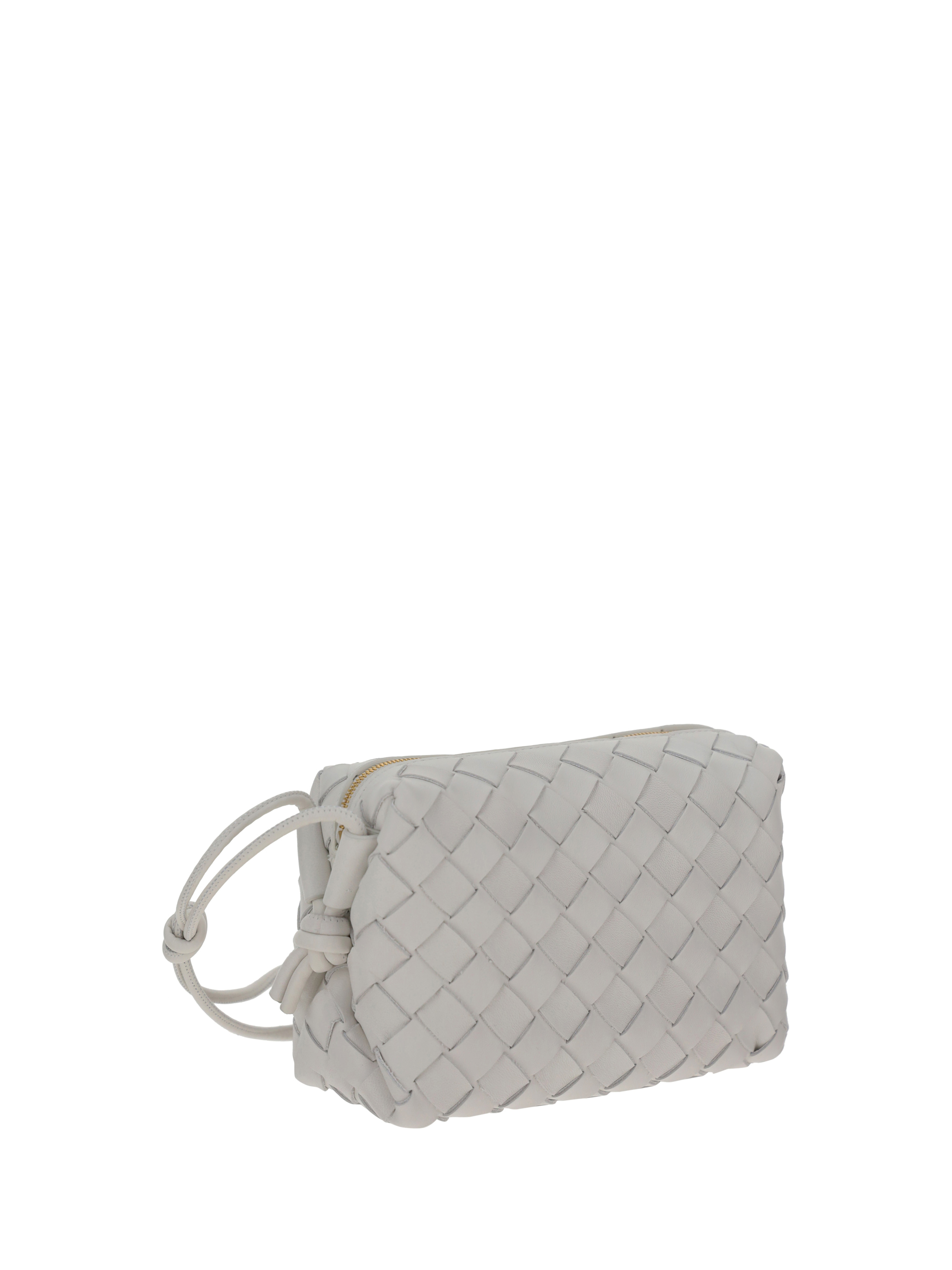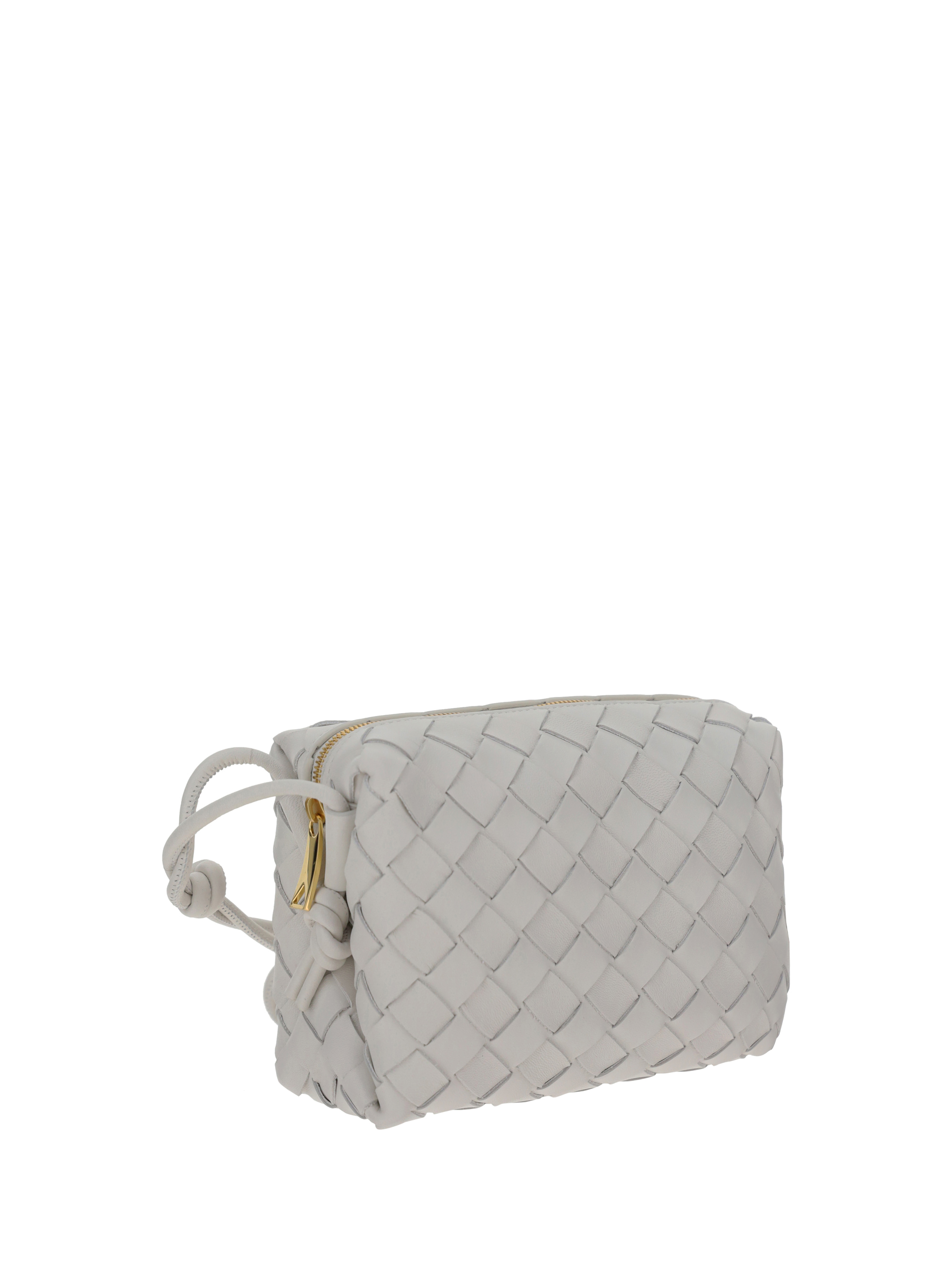 Lambskin Mini Sholuder Bag by Bottega Veneta, design with the brand's iconic all-over intreccio applique, top zip fastening, shoulder strap with knotted details on the side panels, internal slit pocket.