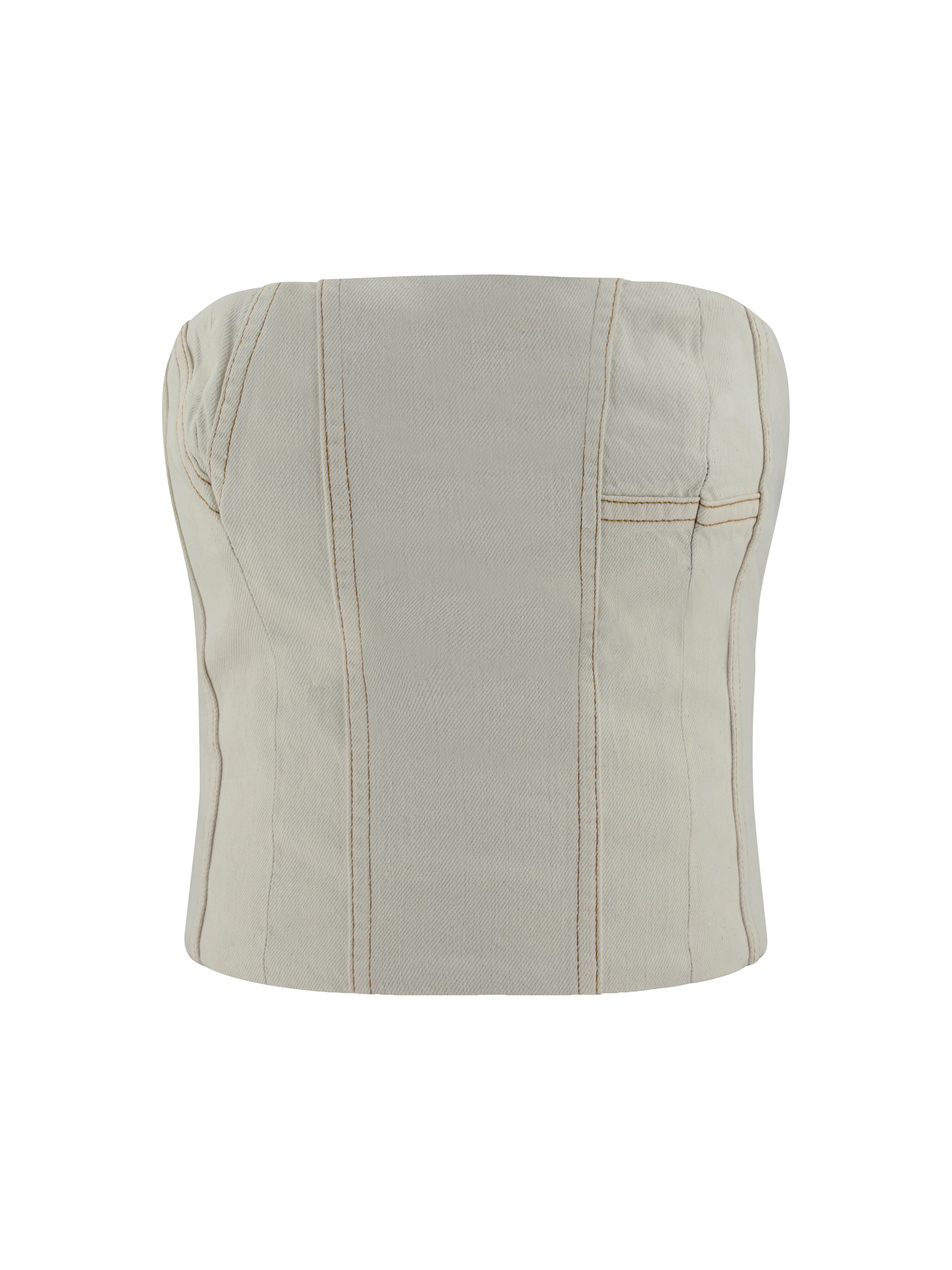 Bustier Top by Amiri, off-shoulder design, all-over contrast stitching, back zipper closure with ruched elastic details.