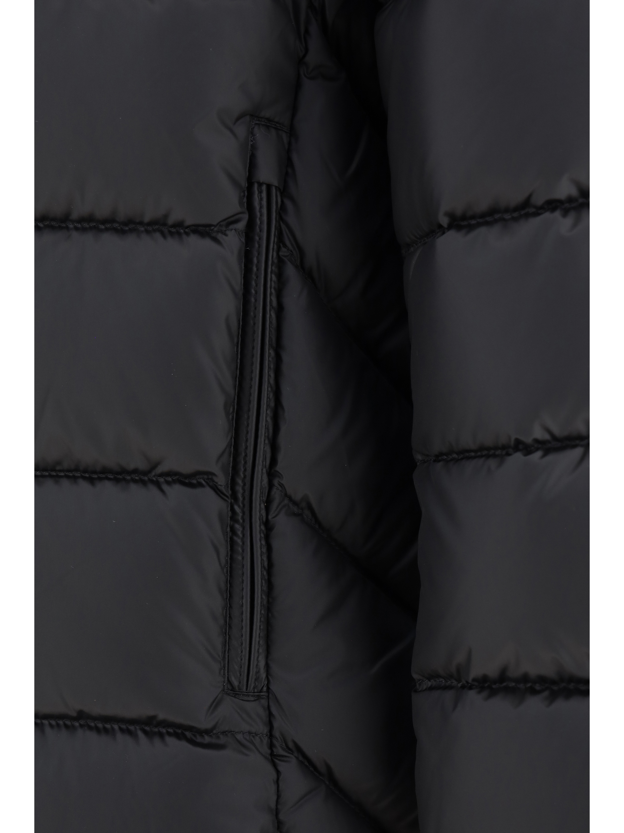 Dillon Down Jacket by Parajumpers, high-neck design, front zipper closure, iconic contrasting strap on front neckline, padded and quilted design, two side slit pockets with zipper, oversize fit.