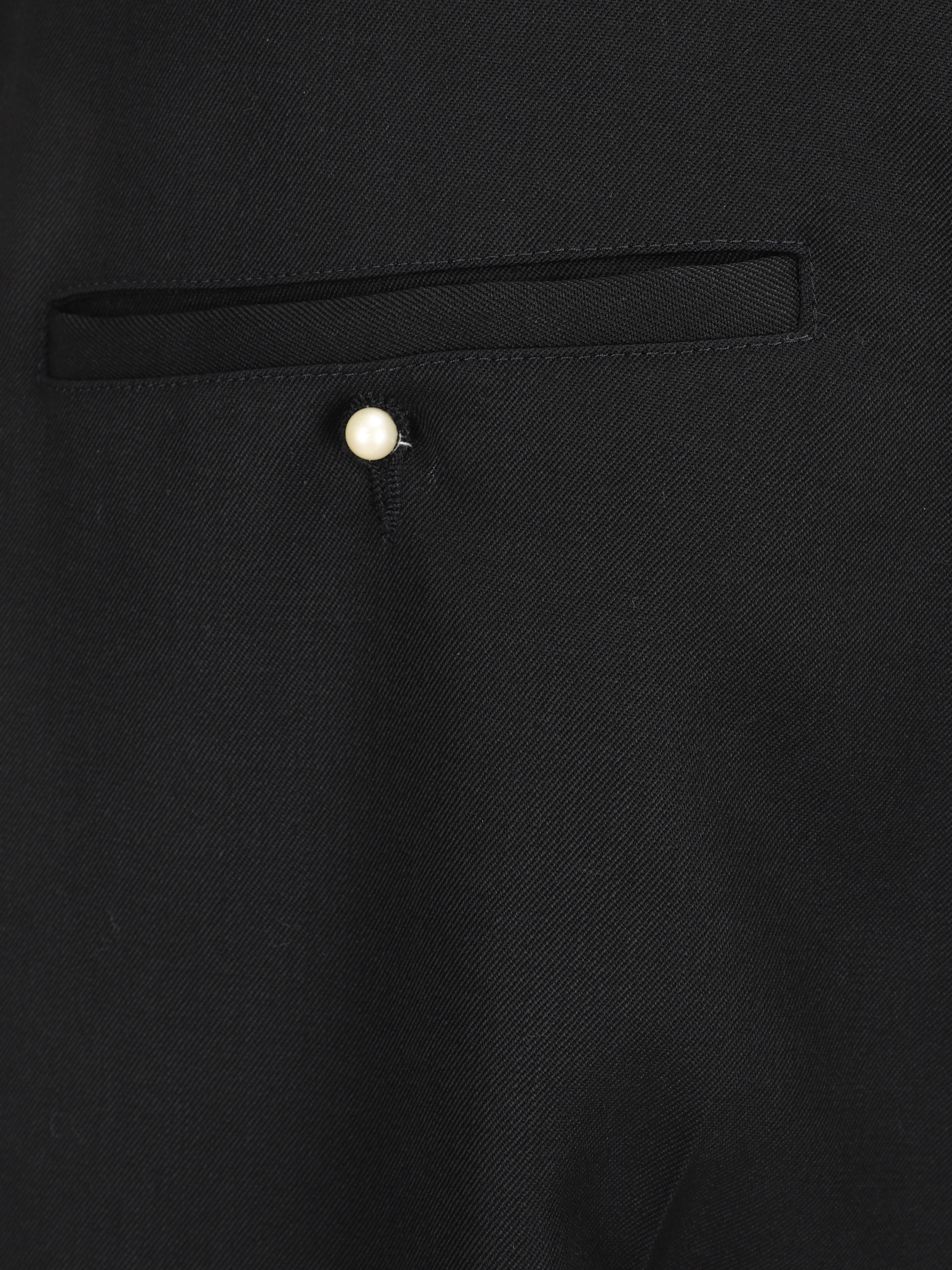 Magliano Virgin Wool People Pants, adjustable elastic waistband with inside drawstring, front zipper closure, two side slash pockets, two welt pockets on back, waistband belt loops.
