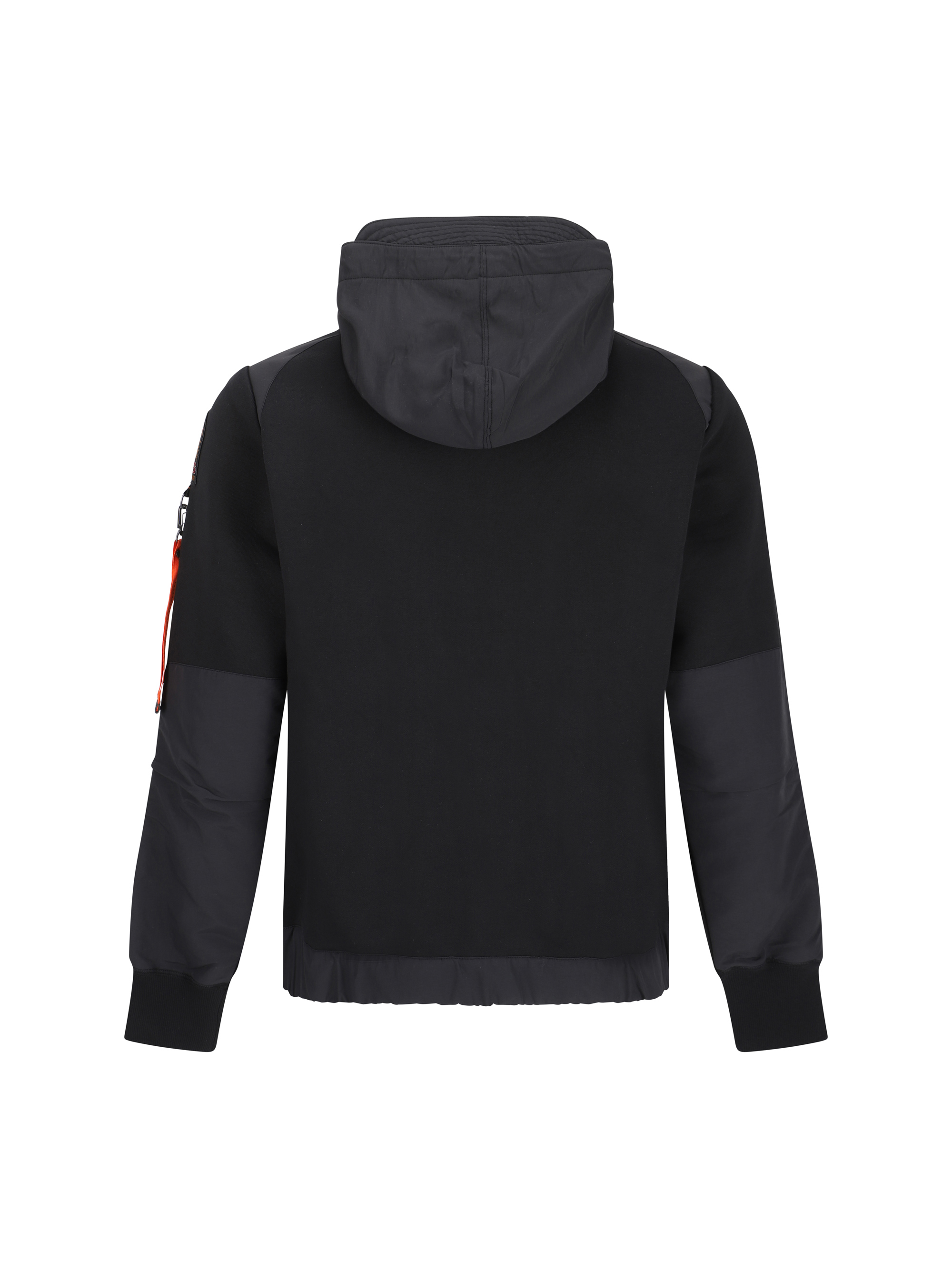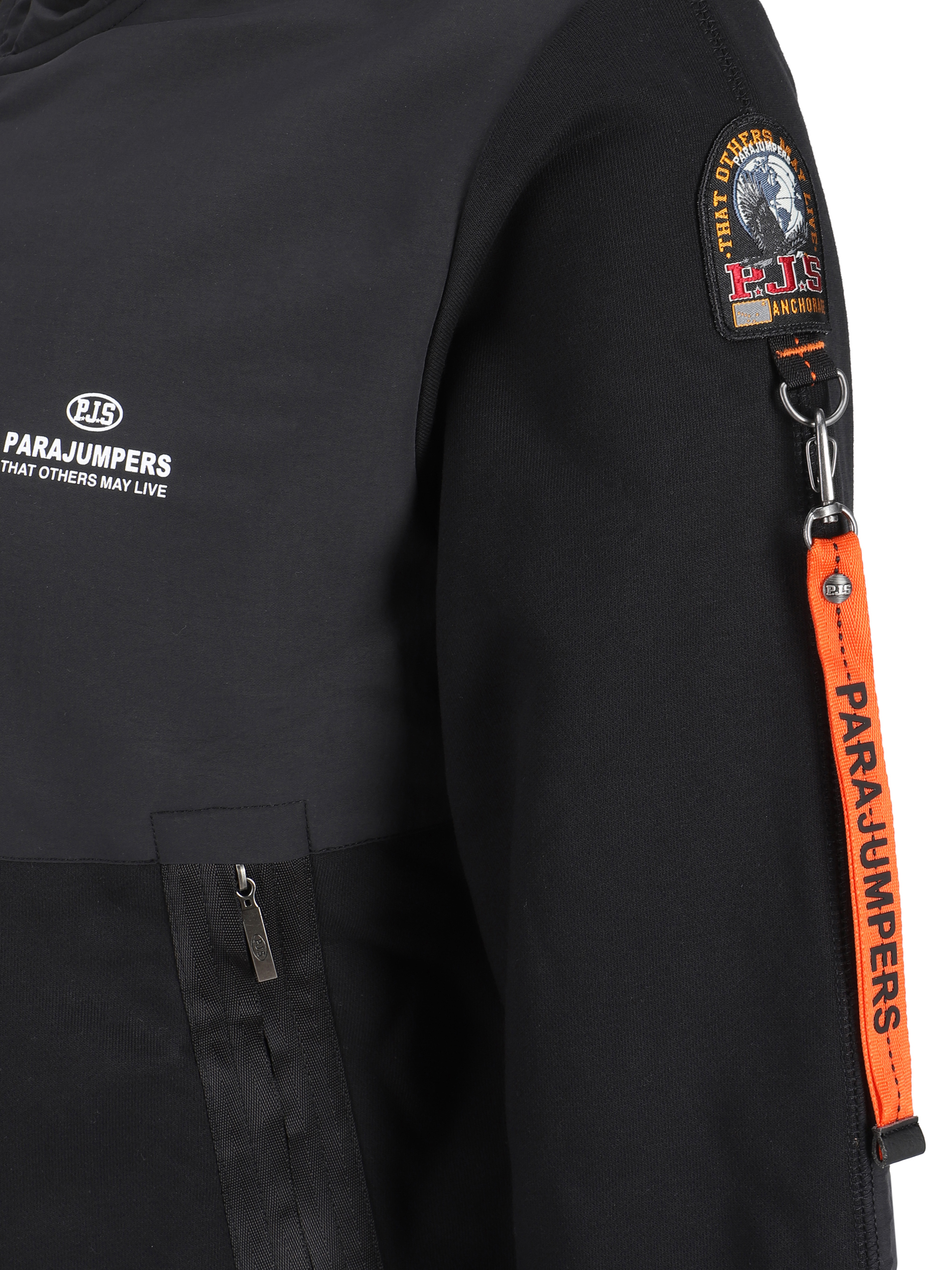 Trident Windbreaker Jacket by Parajumpers, design with drawstring-adjustable hood, front zipper closure, contrasting iconic strap on front neckline, two side zipper welt pockets, contrasting iconic brand monogram on front, plush interior, ribbed cuffs, elasticized hem, iconic brand monogram patch with logo hook applique on left sleeve.