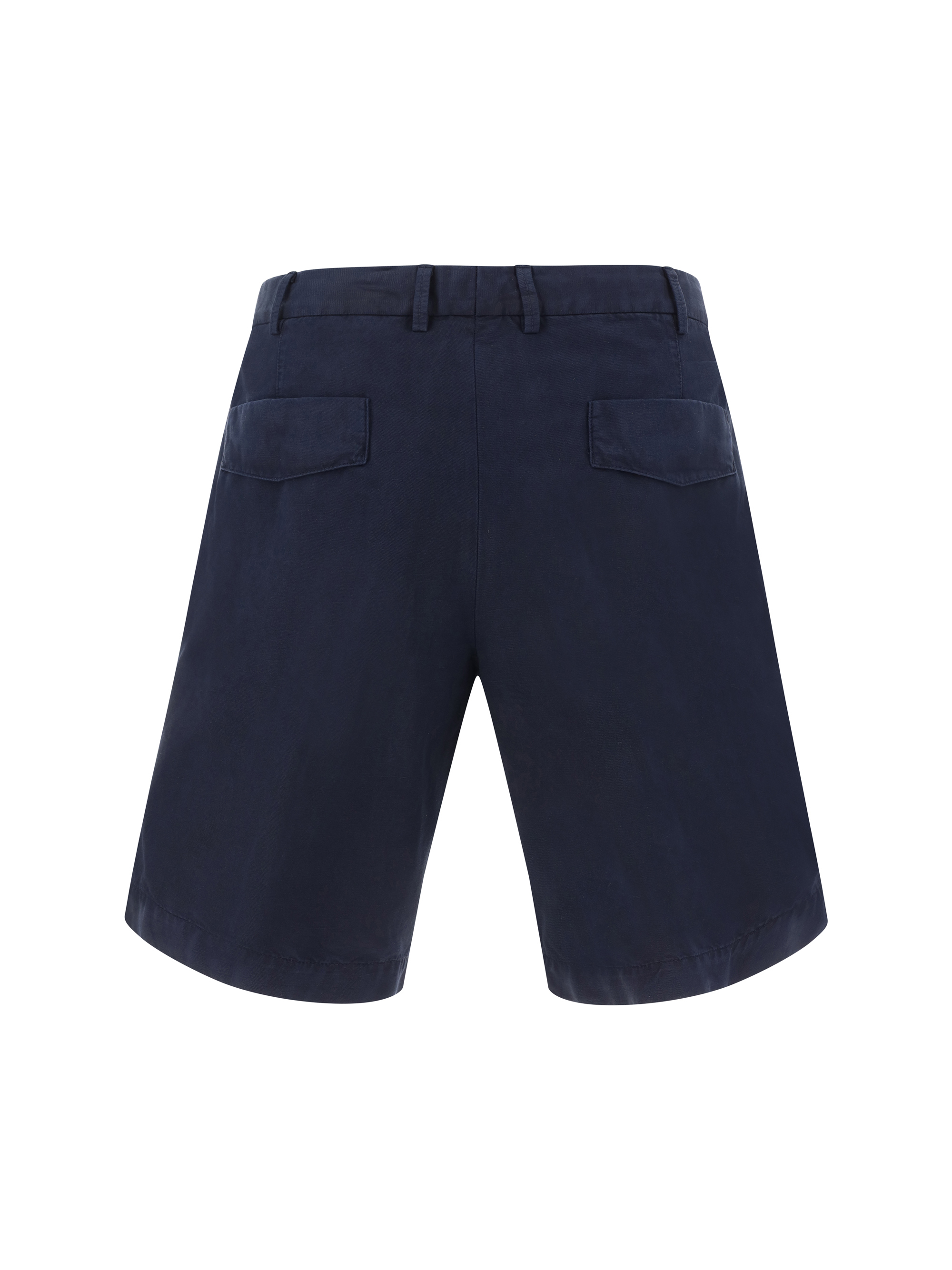 Cotton Shorts by Zegna, front button and zipper closure, two side slash pockets, two welt pockets with flap on back, belt loops waistband, monochrome pattern, regular fit