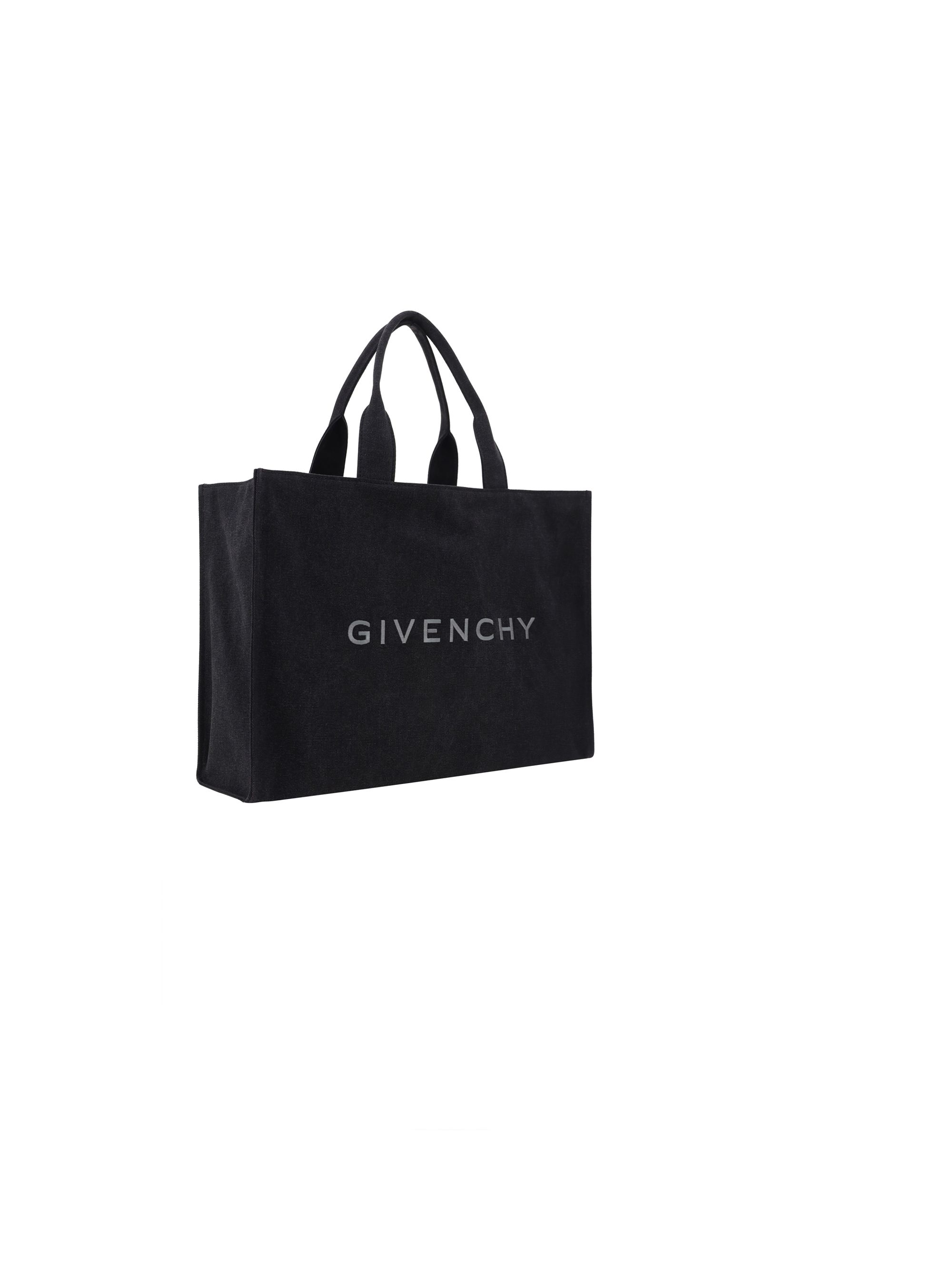 Cotton Handbag by Givenchy, two handles at top, single interior compartment, iconic brand monogram embroidered in contrast on front, embroidered 4G logo on back.