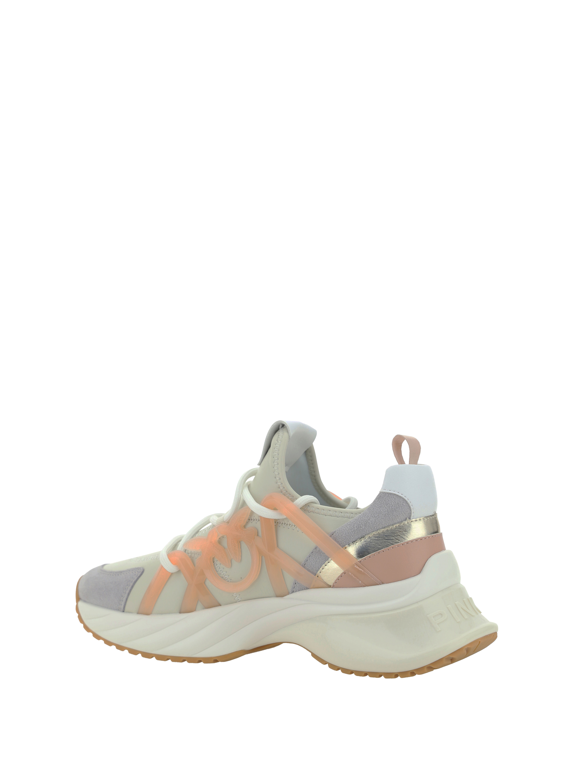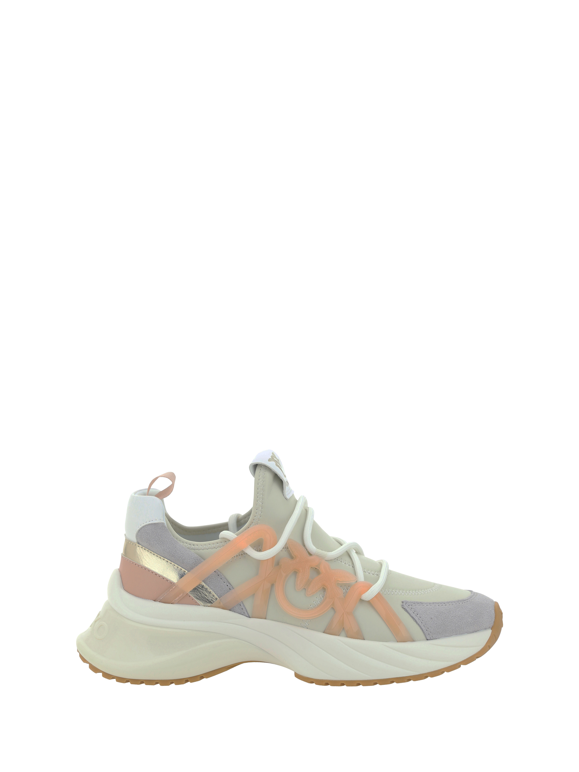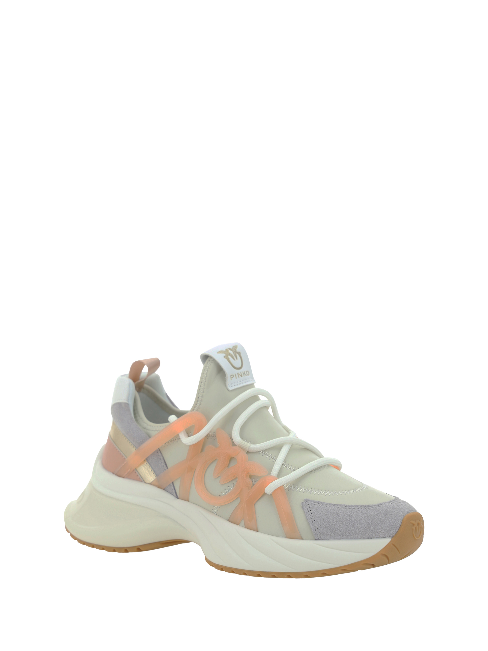 Ariel Sneakers by Pinko, round toe, reinforced flat sole at heel, front lace-up closure, contrasting embroidered logo label on front tab, multicolored paneled design.