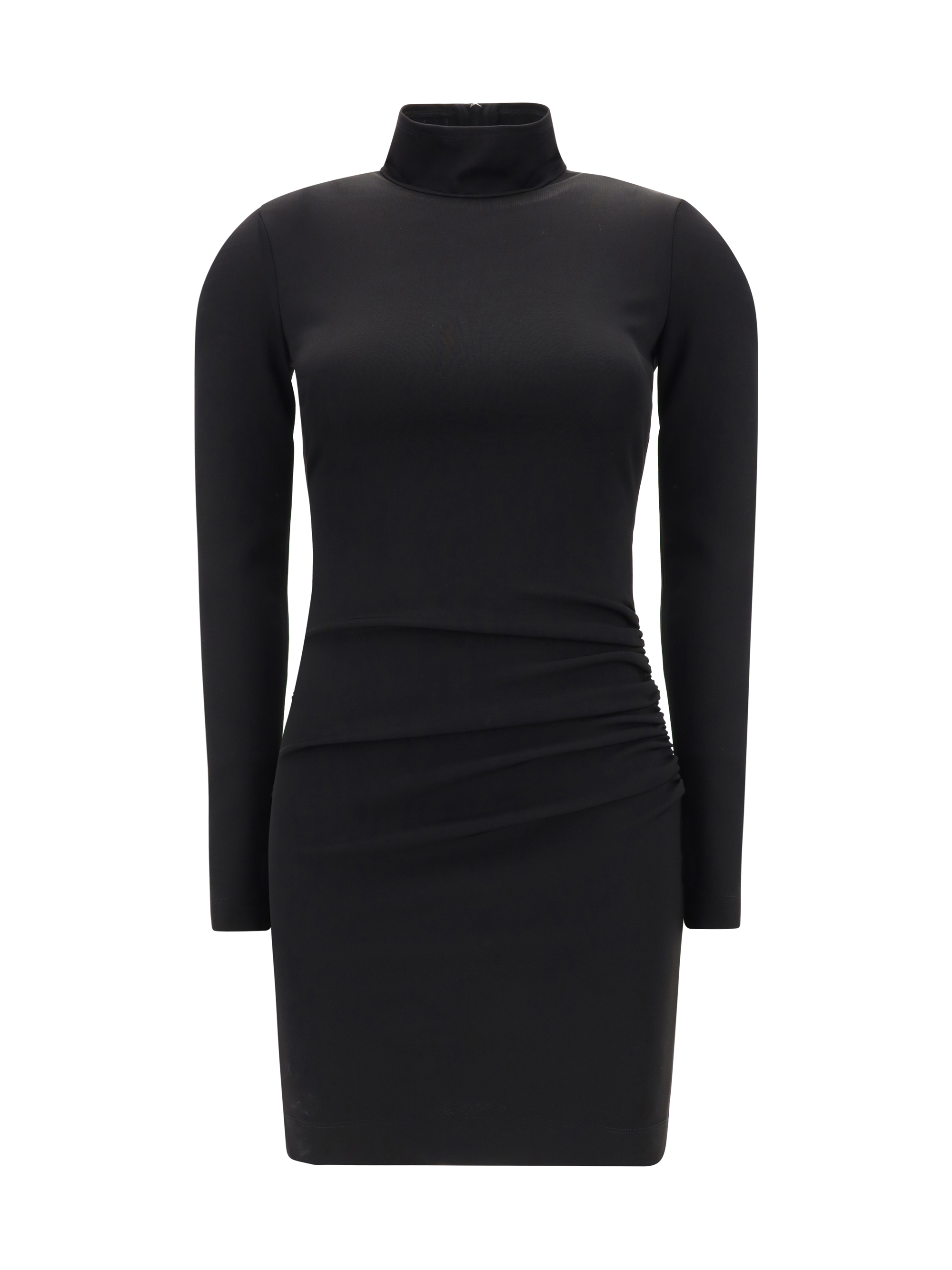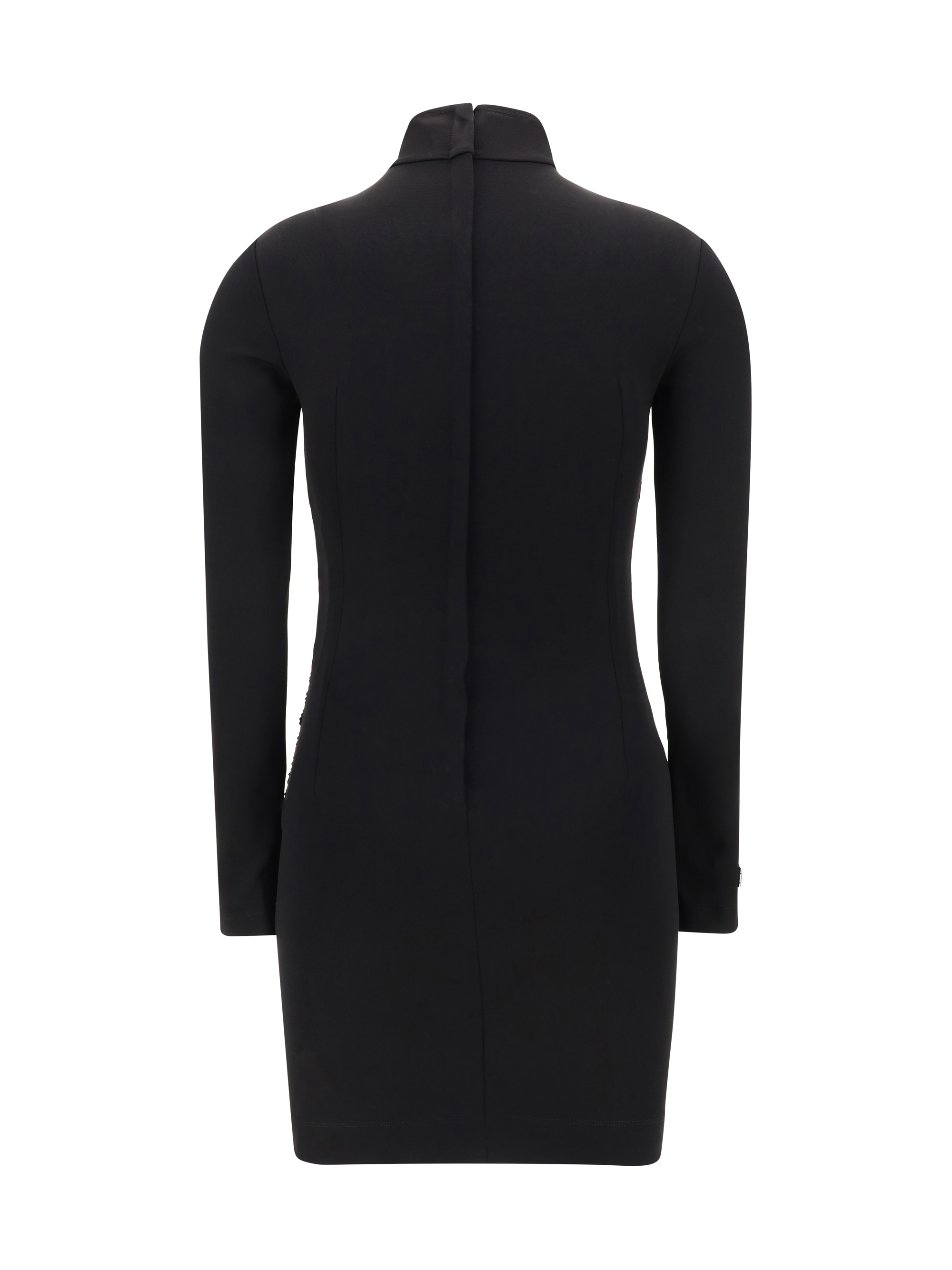 Mini Dress by Dolce&Gabbana, turtleneck, fitted sheath design, smock stitch on left hip, three-dimensional plaque with iconic D&G logo applique on cuffs, slim fit.