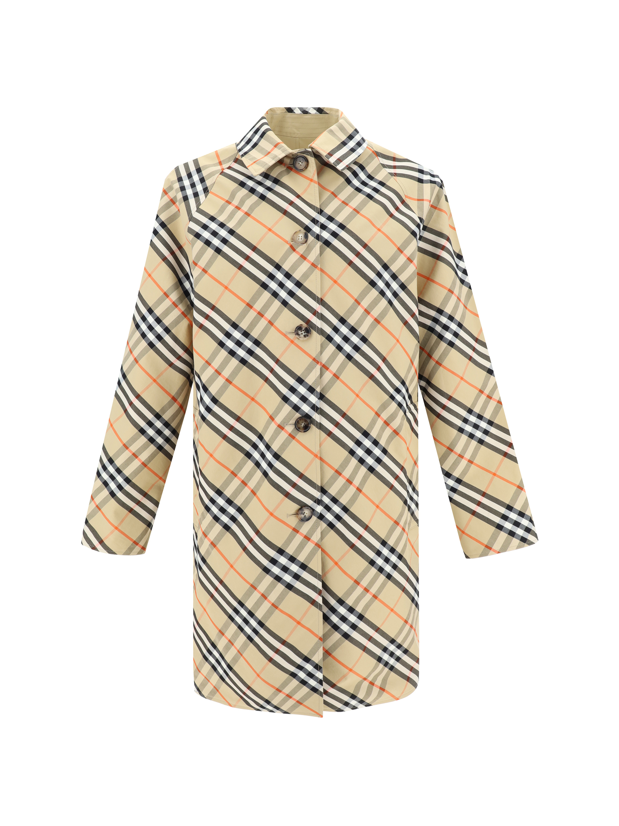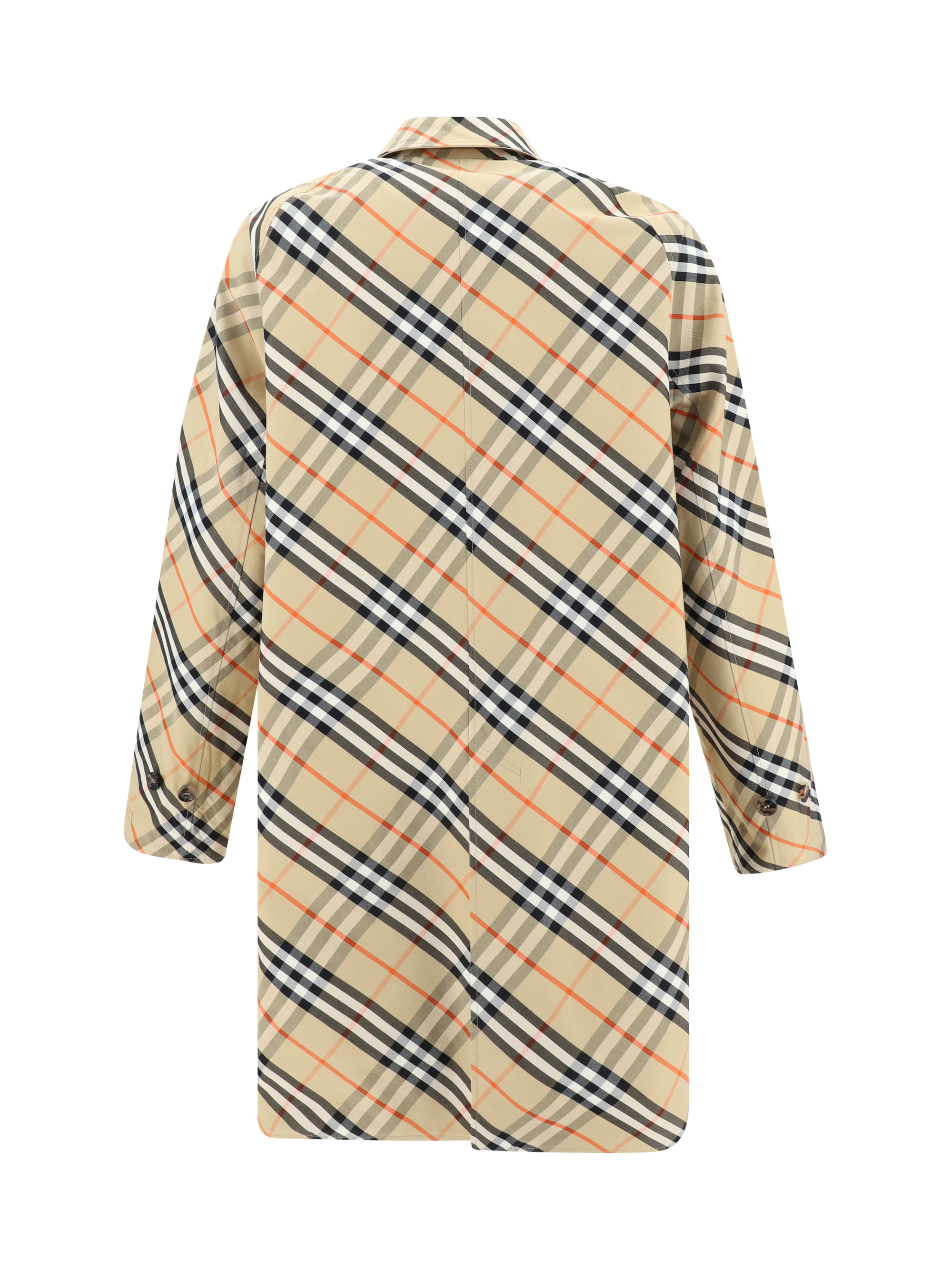 Cotton Reversible Coat by Burberry, monochrome double face design and iconic all-over Check Archivio pattern, classic collar, front button closure, two side welt pockets, back slit, regular fit.