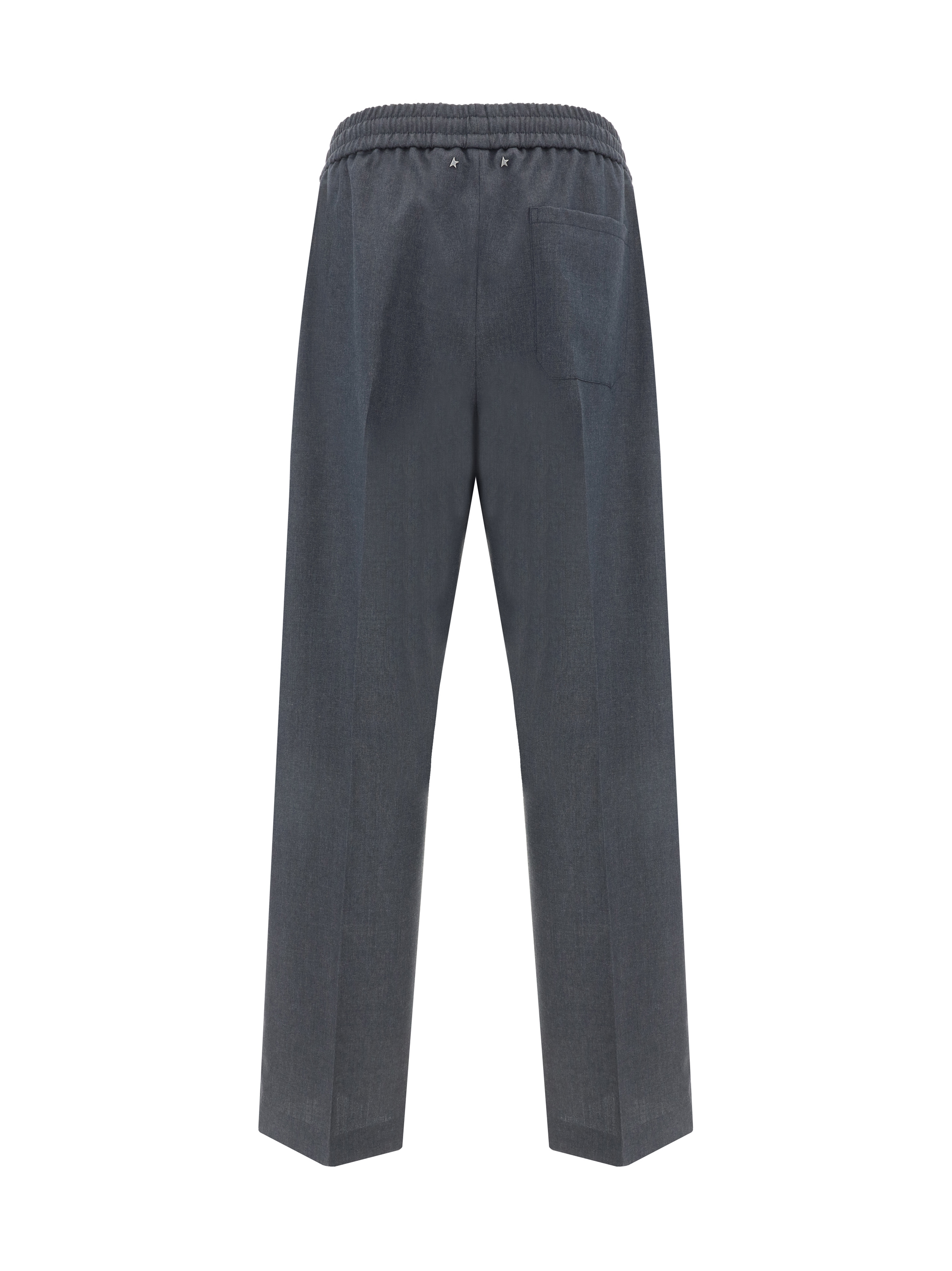 Virgin Wool Pants by Golden Goose, featuring an elasticized waistband, two side welt pockets, back slit pocket, monochrome pattern, regular fit.
