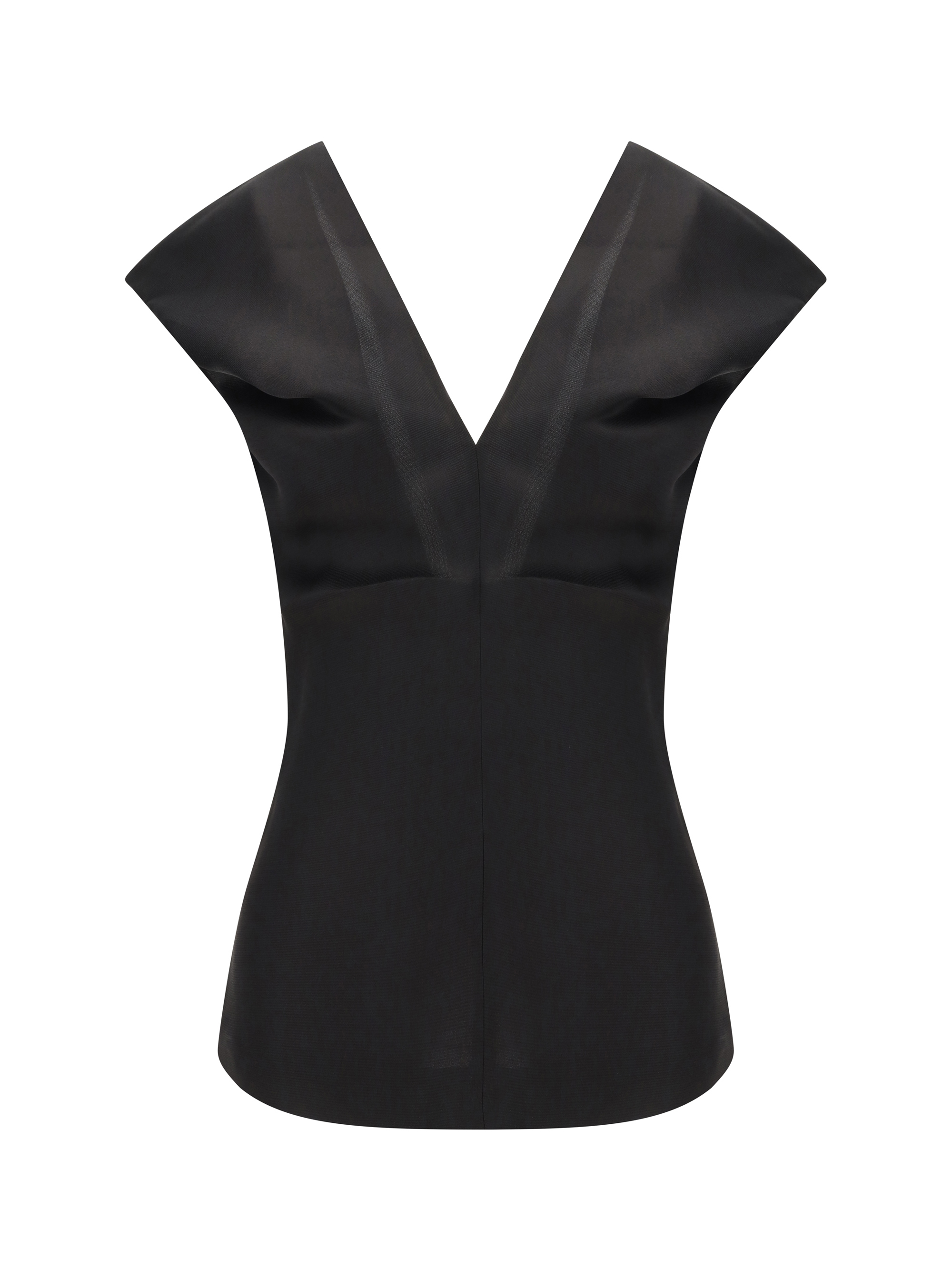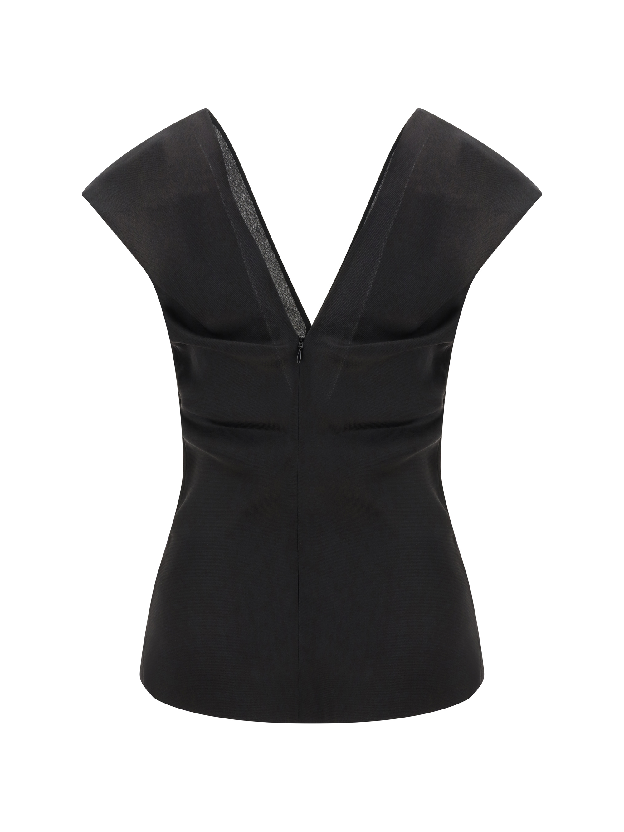 Silk Ami Top by Khaite, sleeveless design, V-neck front and back, monochrome pattern, regular fit.