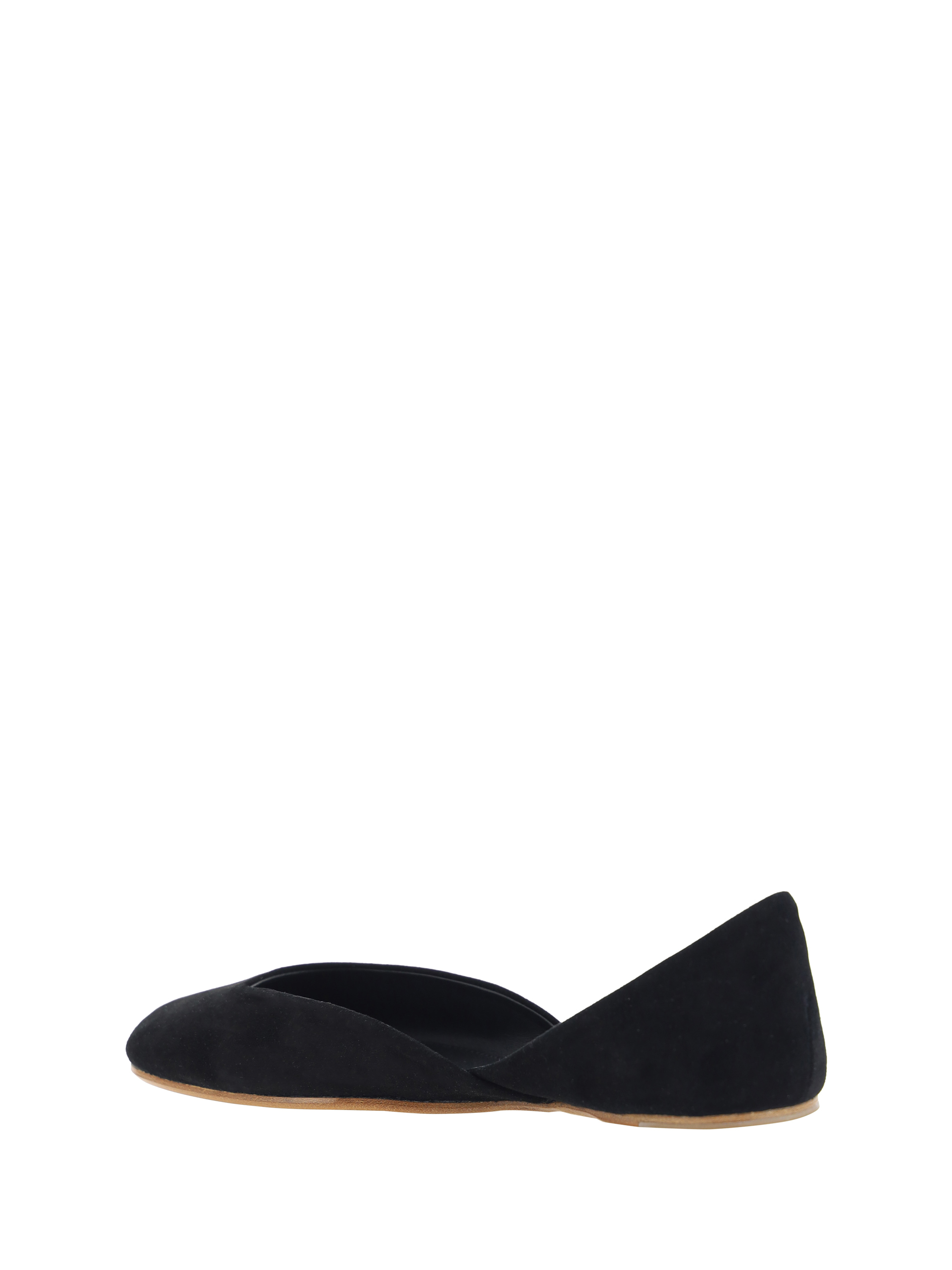 Calfskin Gemma Ballerinas by The Row, 1960s-inspired design, almond toe, elongated shape and feminine instep, suede upper.