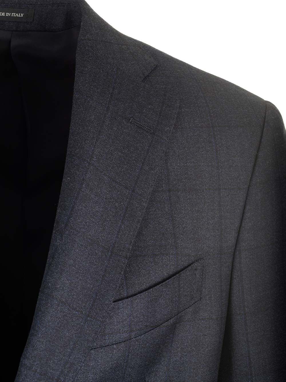 SKU B4509993 Blue windowpane dress in Loro Piana fabric, two buttons, welt pockets with flap, two slits COD. A057EF101