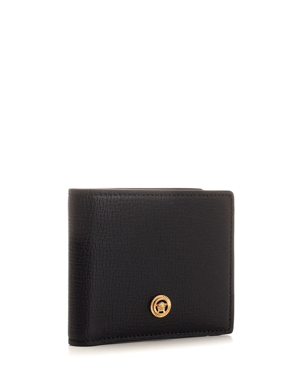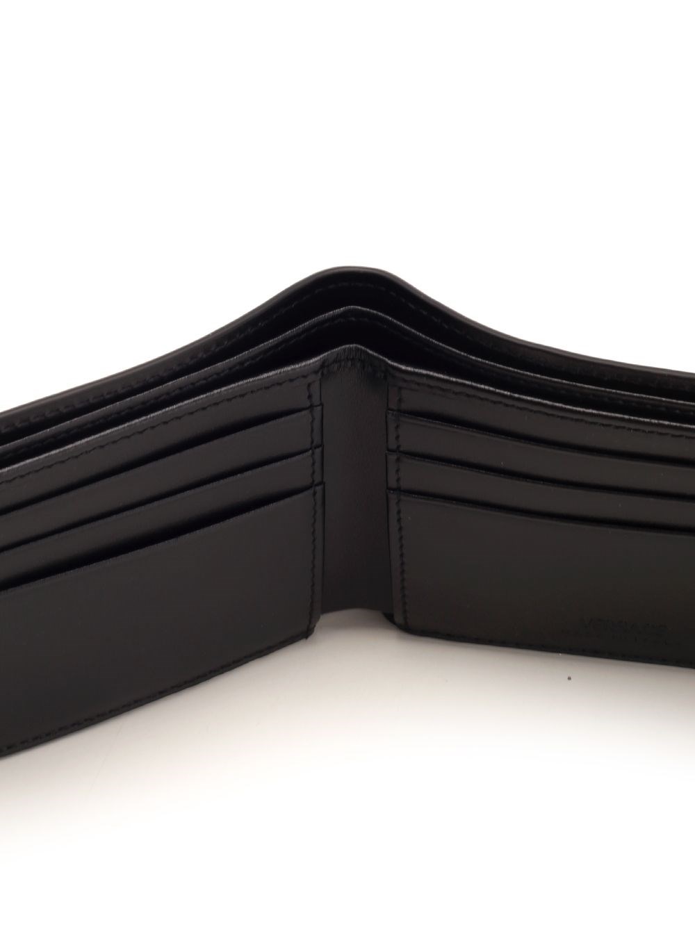 SKU B4507821 "Medusa Biggie" wallet in grained leather from Versace, featuring the Medusa Biggie emblem and multiple internal card slots. COD. DPU2463_1A105441B00V