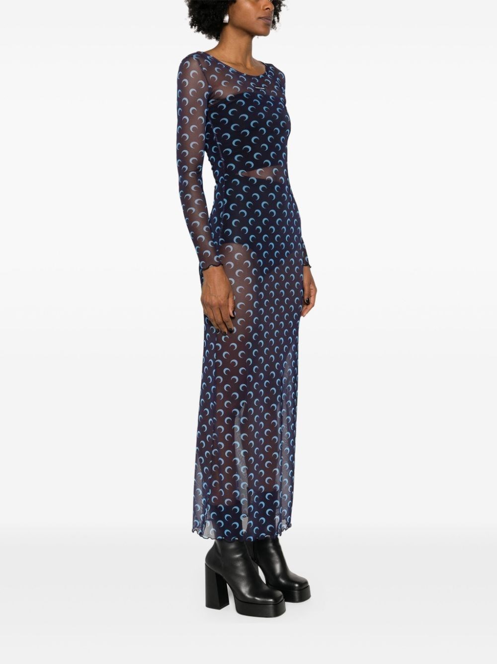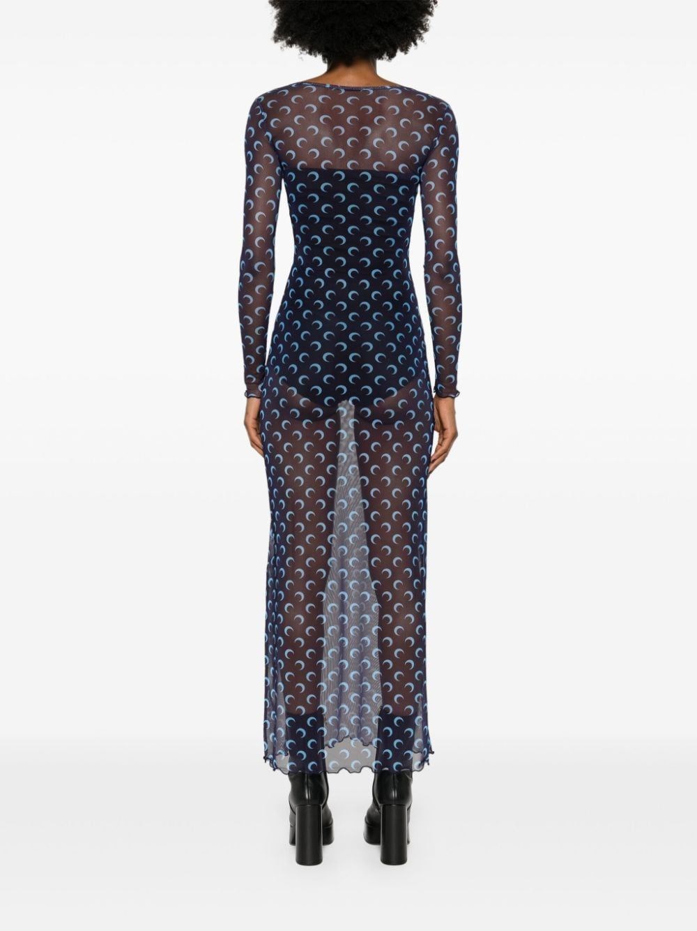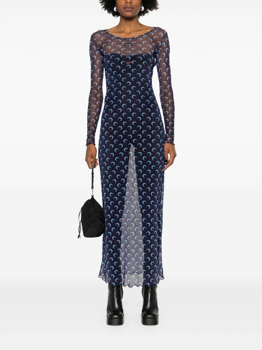 SKU B4507637 Midi dress from Marine Serre in sheer blue stretch mesh with light blue moon prints, long sleeves, crew neck. COD. WDR300ABL90