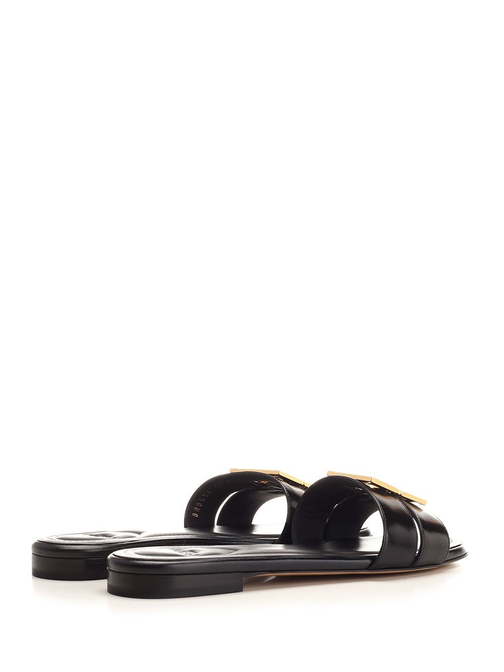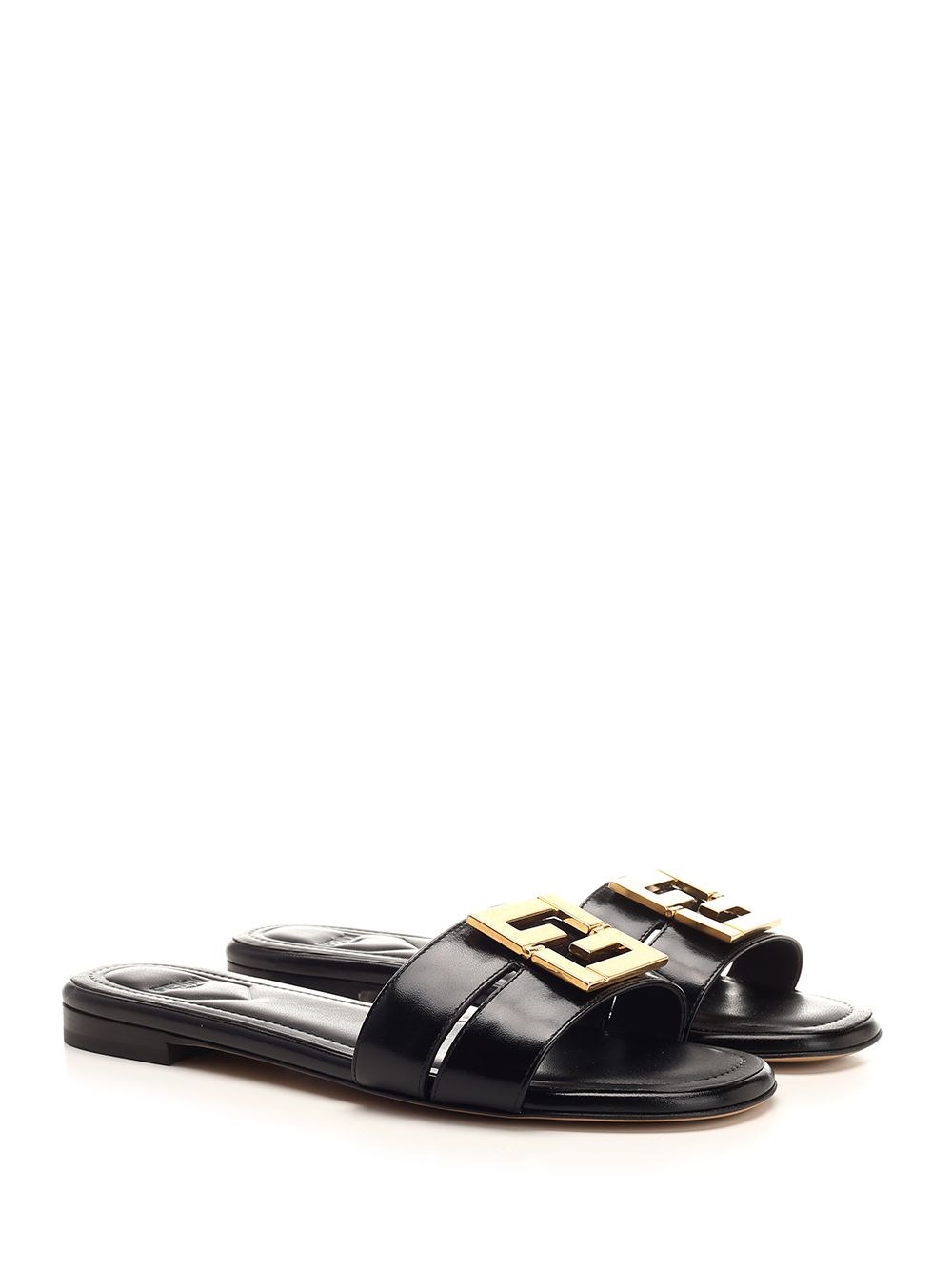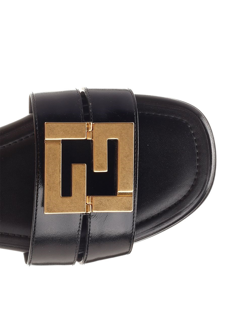 SKU B4504424 Fendi FFold sandal in black leather with FF motif in gold metal COD. 8R8554F0QA1