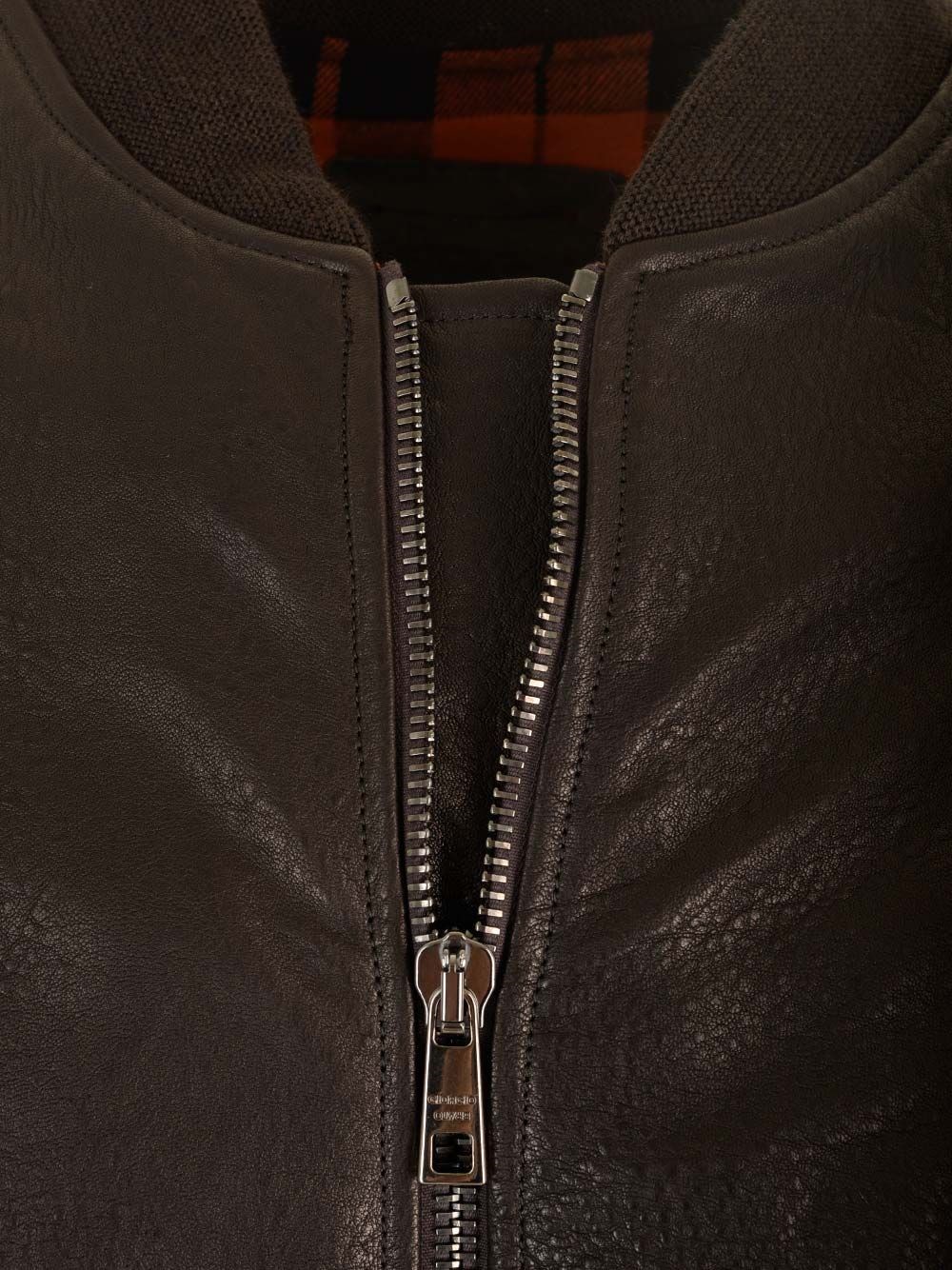 SKU B4507870 Brown lambskin bomber jacket with zip front fastening, elasticated wool cuffs and bottom, flap pockets with press studs COD. GU25F14095BROWN