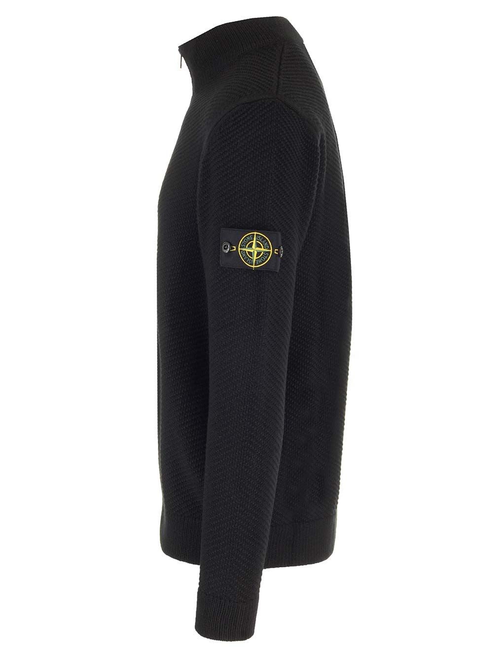 SKU B4504524 Geelong wool half zip sweater Ribbed collar with zip fastening. Stone Island badge on left sleeve. Ribbed cuffs and bottom band. Loose fit. COD. 8115548B6V0029