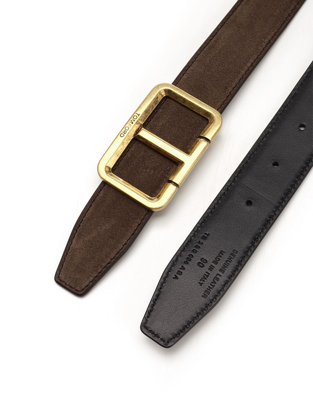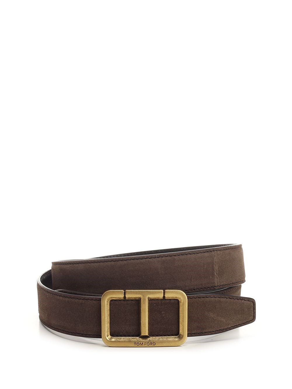 SKU B4511293 "T scored" belt in brown suede from Tom Ford. COD. TB280-LCL294X1B051