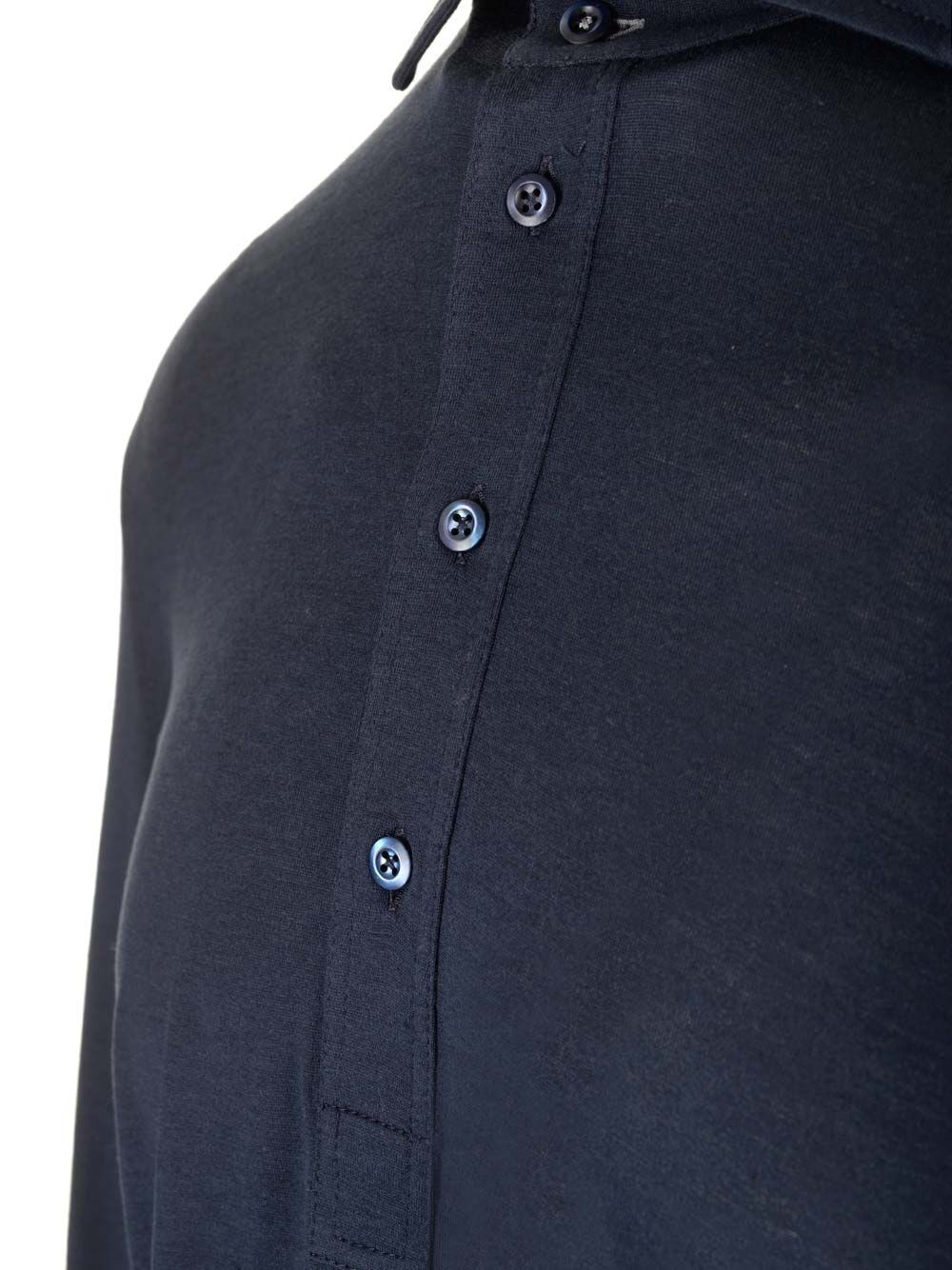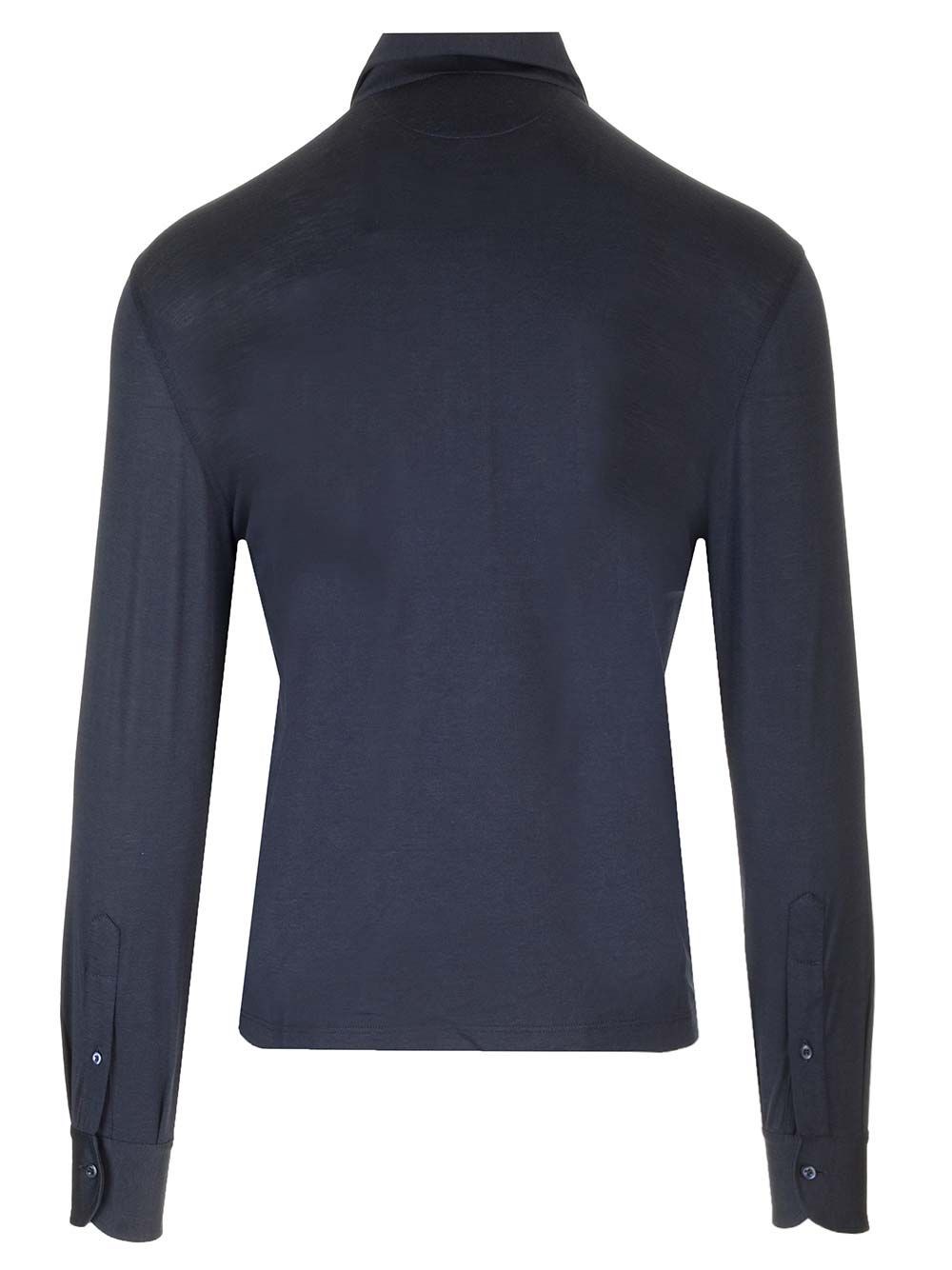 SKU B4506804 Polo shirt in navy blue soft blue silk and cotton jersey from Brunello Cucinelli with long sleeves, buttons, classic collar, slim fit. COD. MH8363914C6134