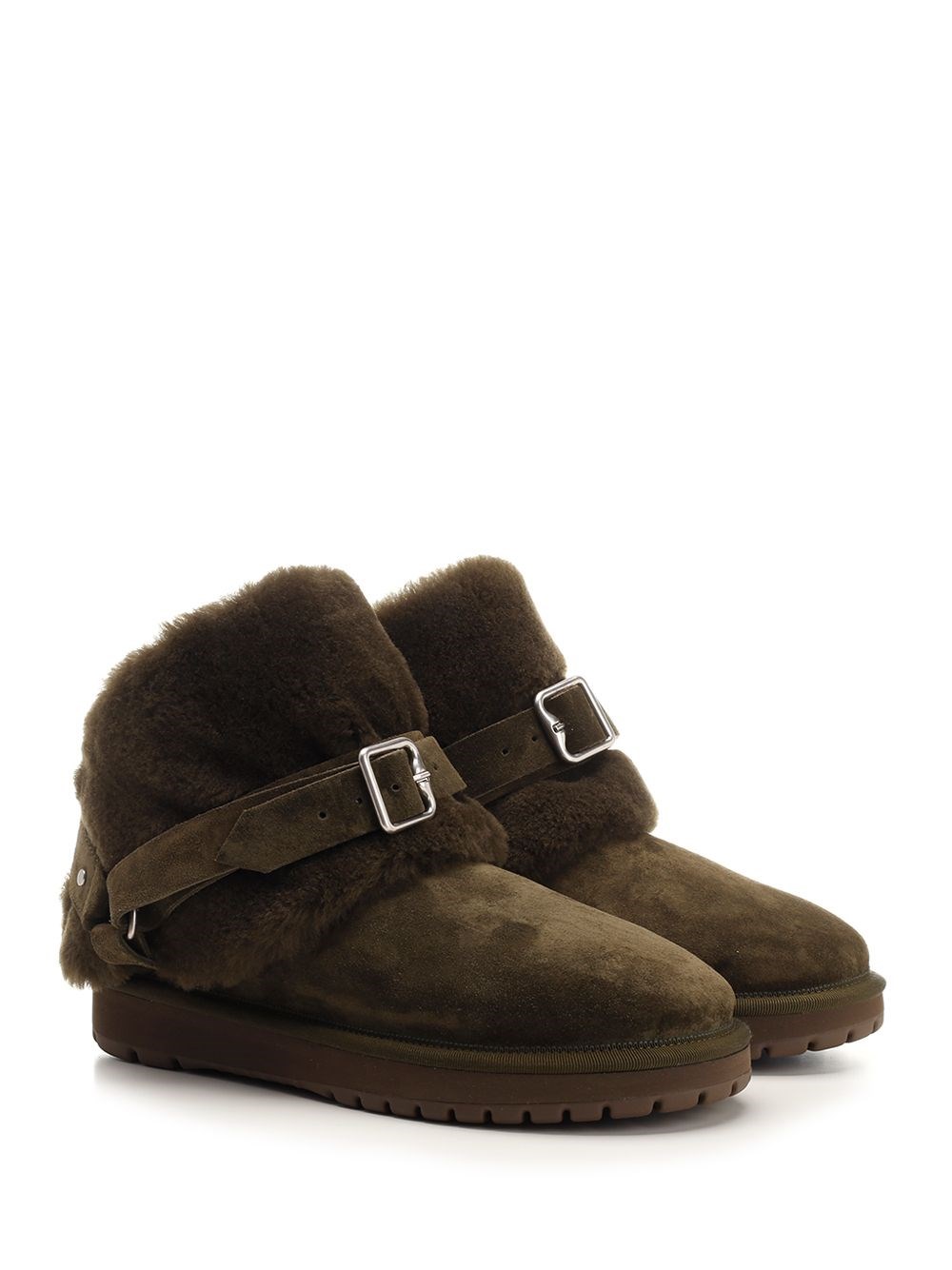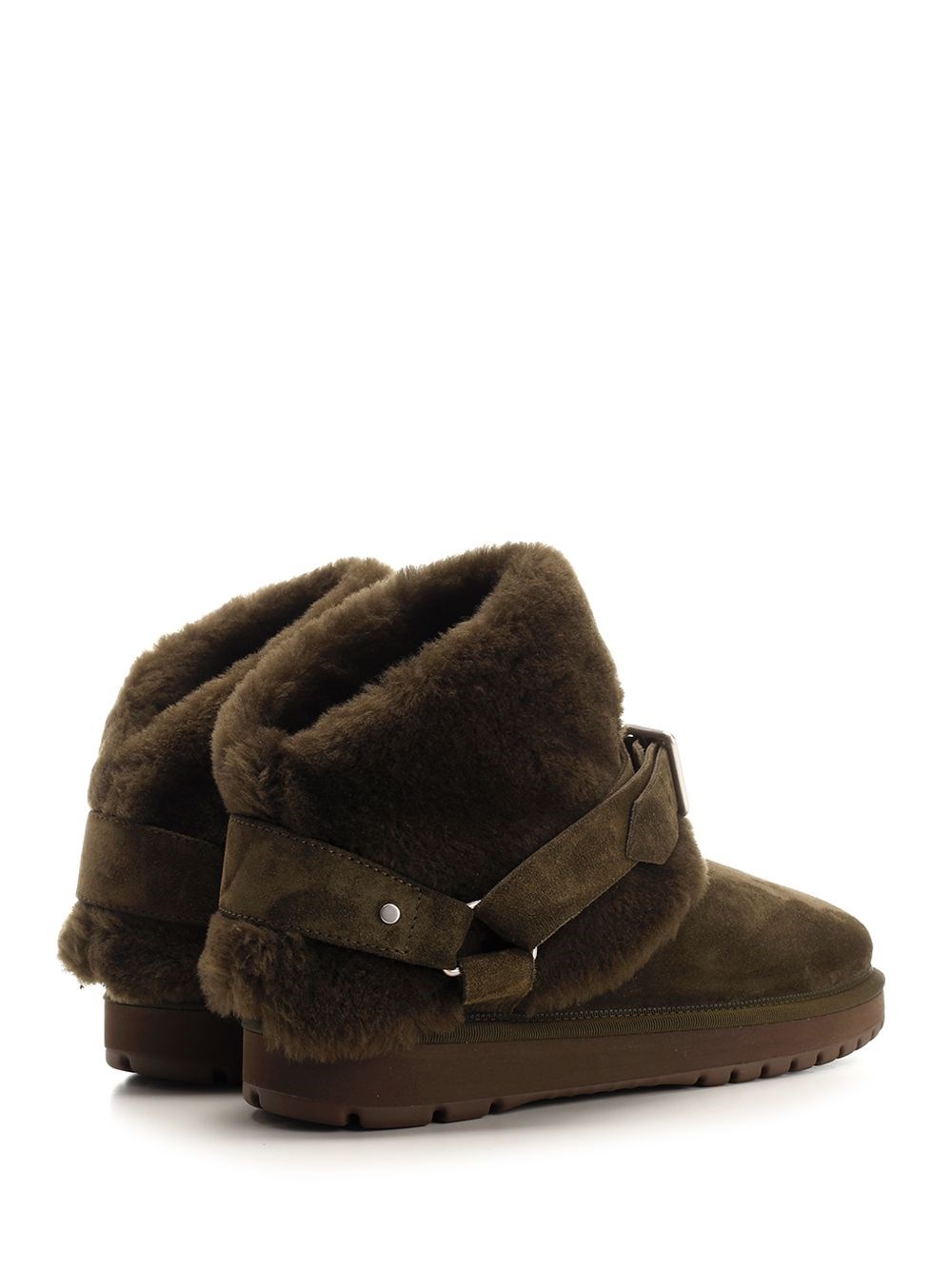 SKU B4507938 "Chubby" boots by Burberry, in green "lock" suede and shearling, with "B" buckle straps and thick molded rubber sole. COD. 8092544C1173