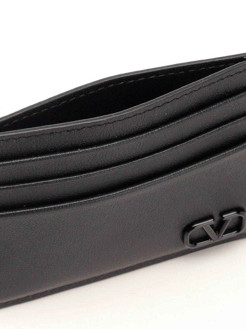 SKU B4501128 VLogo Signature pocket card holder in calfskin from Valentino Garavani, featuring a lacquered Mini VLogo Signature detail, six card slots and Valentino Garavani logo. COD. 5Y2P0S49ZQU0NO