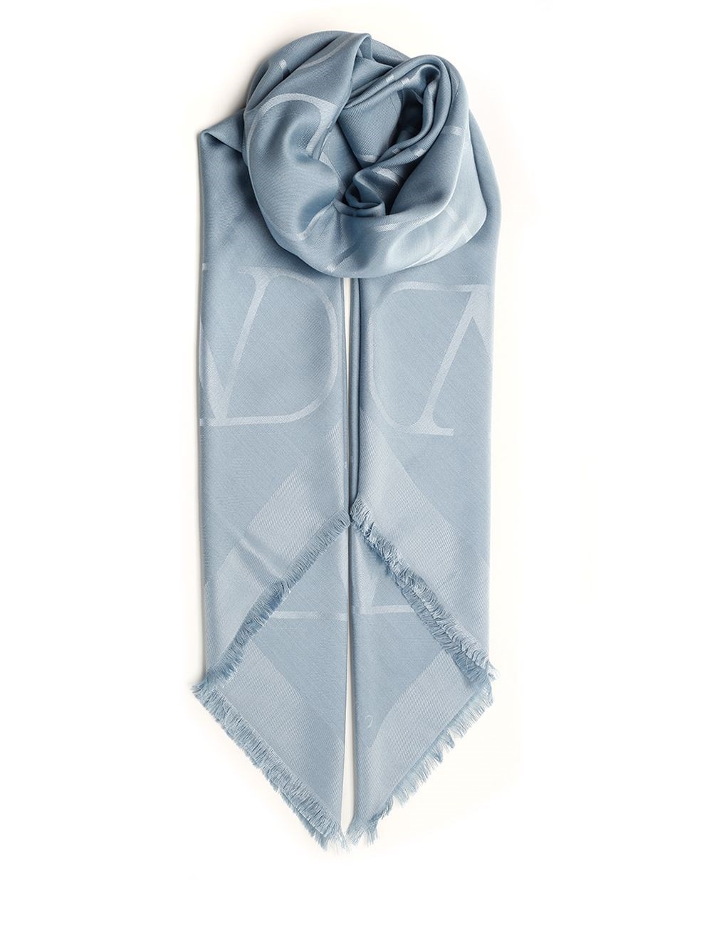 SKU B4502531 "VLogo Signature" shawl in powder blue silk and wool blend with "VLogo Signature" COD. 5W2EB104AJBL04