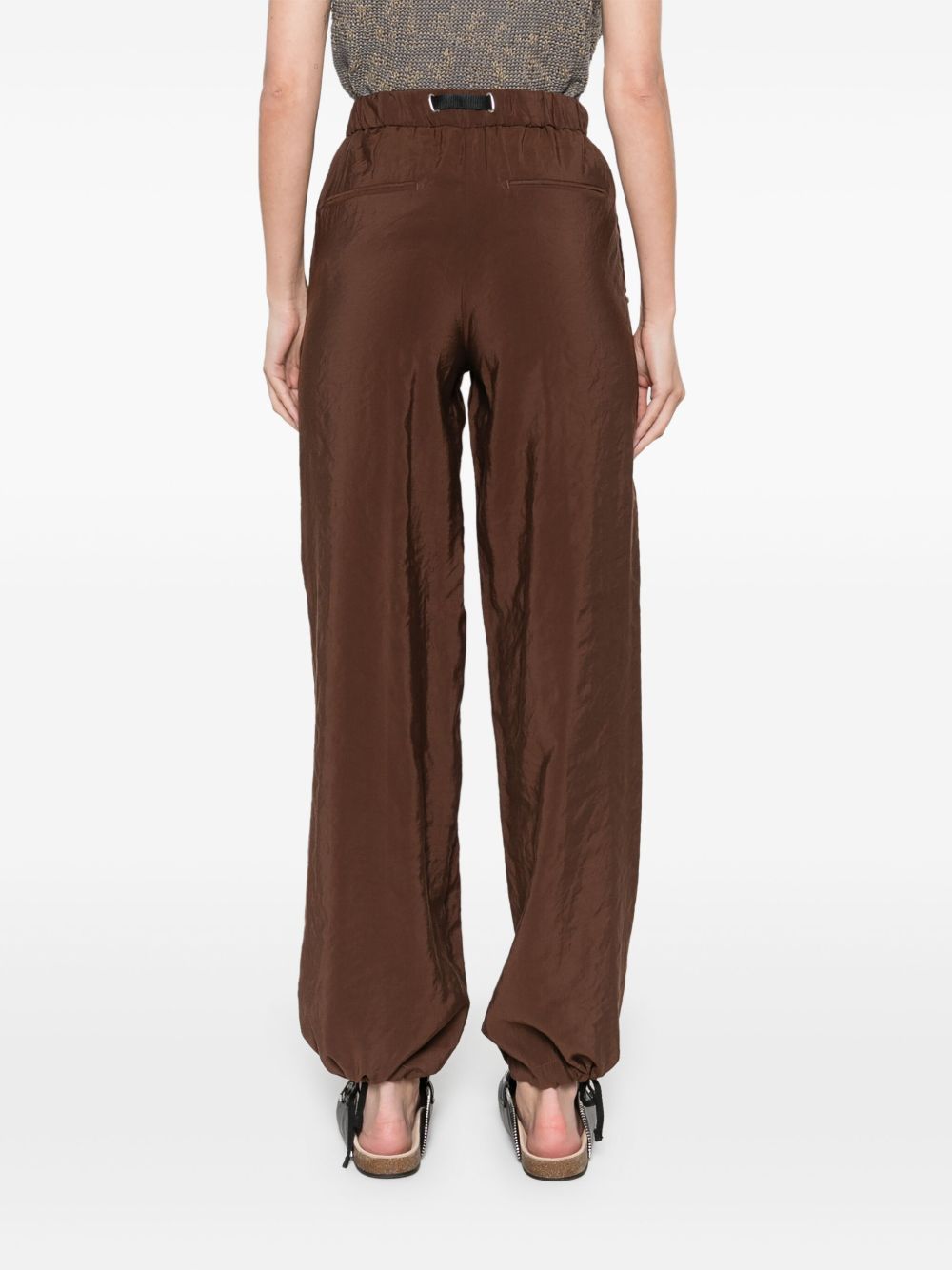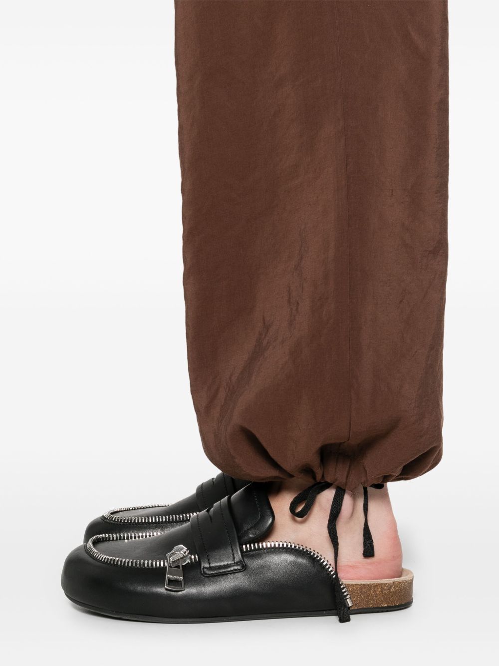 chocolate brown concealed front button, hook and zip fastening hook fastening two side inset pockets drawstring hem