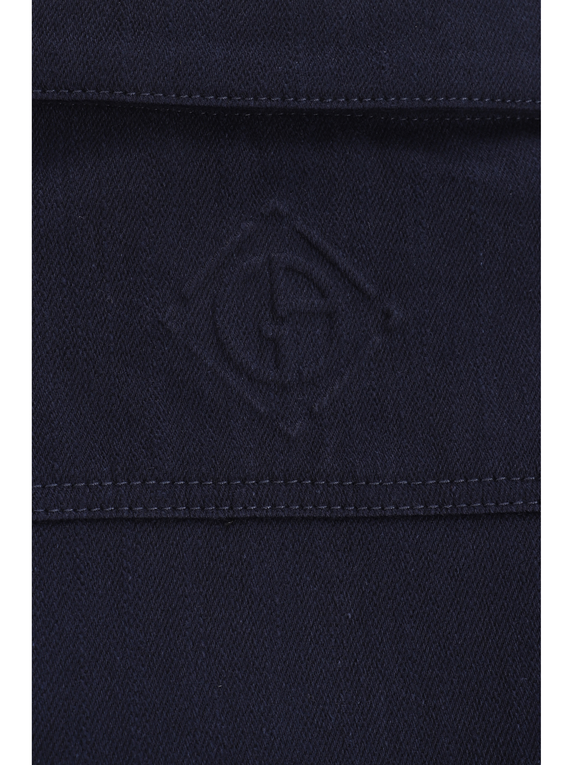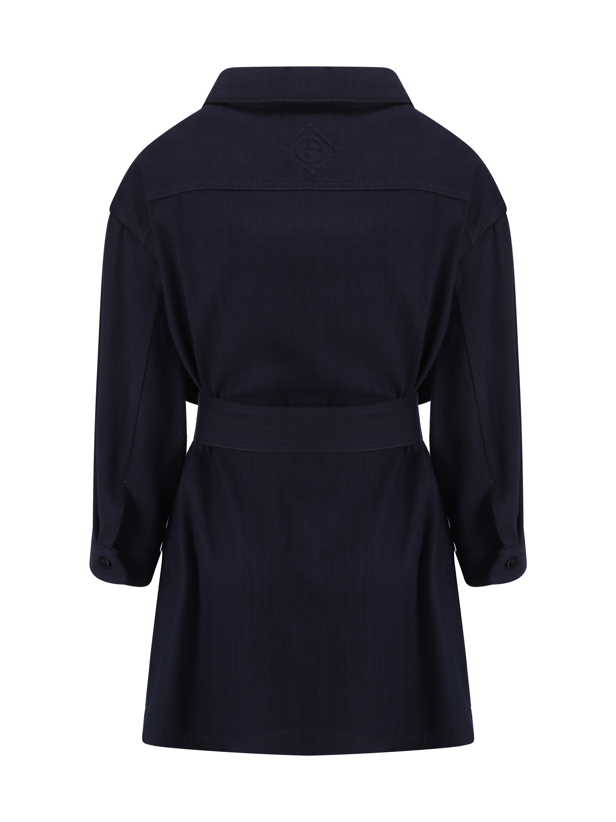 Cotton Jacket by Giorgio Armani, over-the-knee design, classic collar, front closure by concealed buttons, two side welt flap pockets, two front flap patch pockets, matching adjustable sash, monochrome pattern, over fit.