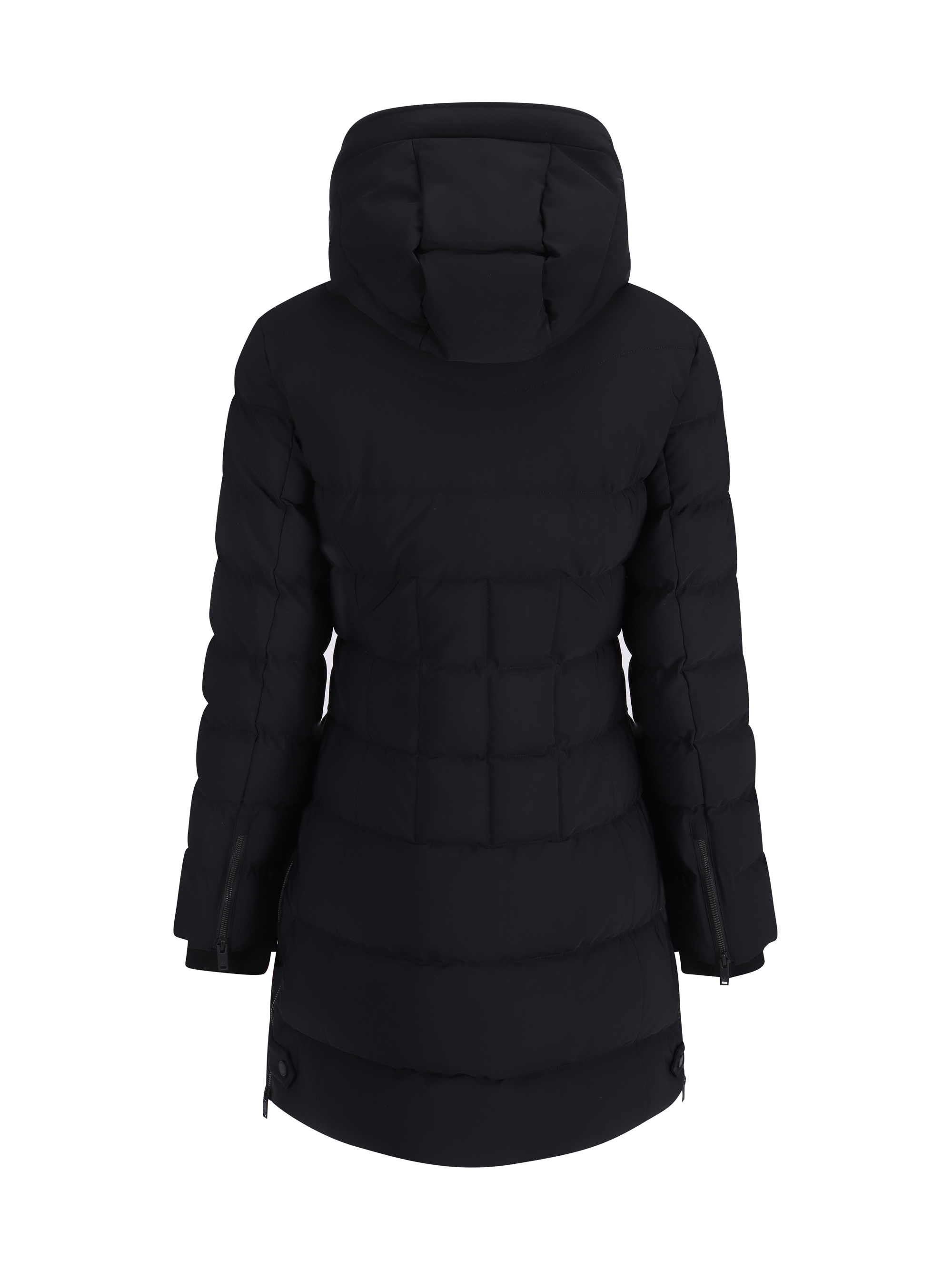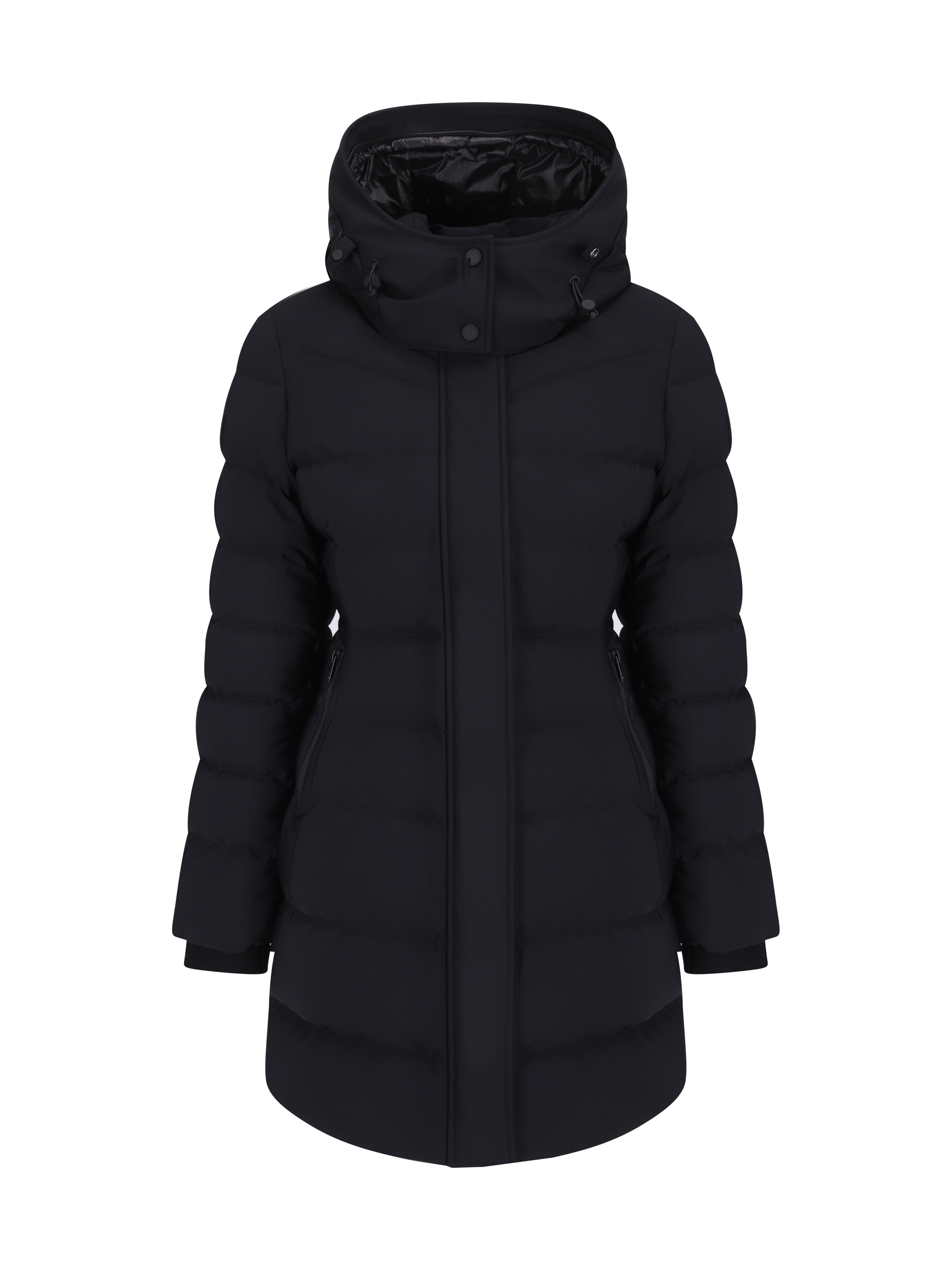 Watershed Down Jacket by Moose Knuckles, design with button-removable and drawstring-adjustable hood, front closure by double-slider zipper and magnetic buttons, two zippered welt side pockets, ribbed cuffs, two zippered adjustable side slits, all-over quilted and padded design, monochrome pattern, regular fit.
