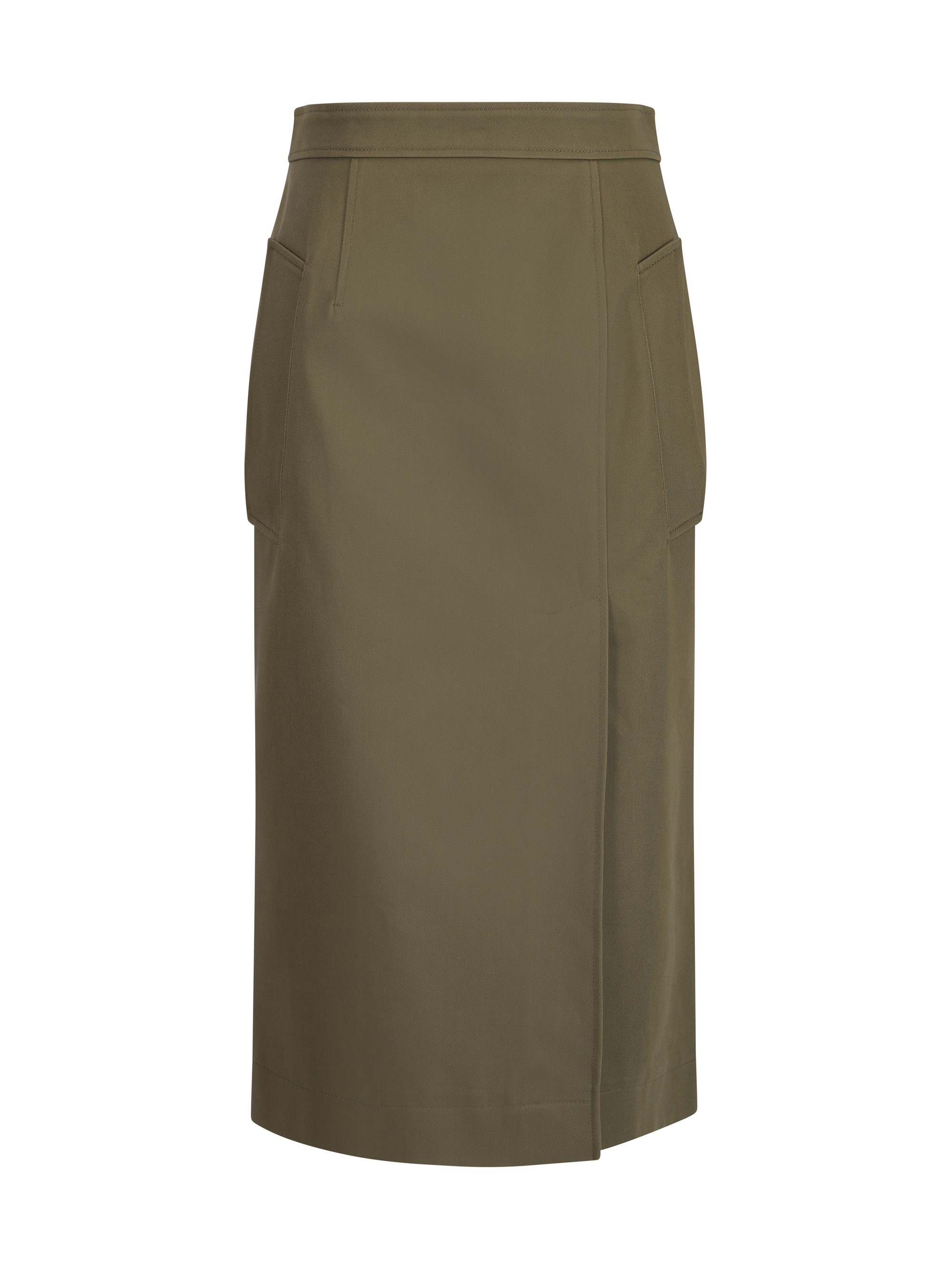 Cotton Midi Skirt by Alexander McQueen, side zipper closure, two side welt pockets, front slit, one back slit, back chain detail, monochrome pattern, regular fit.