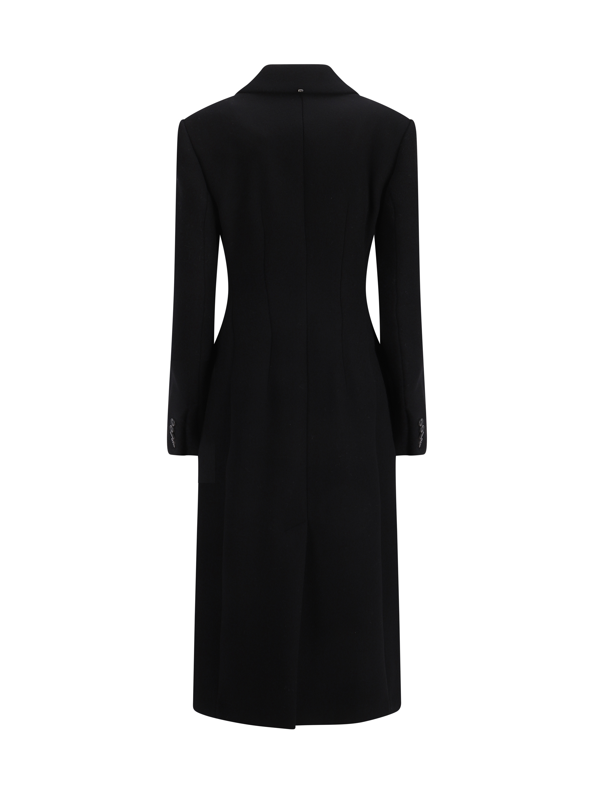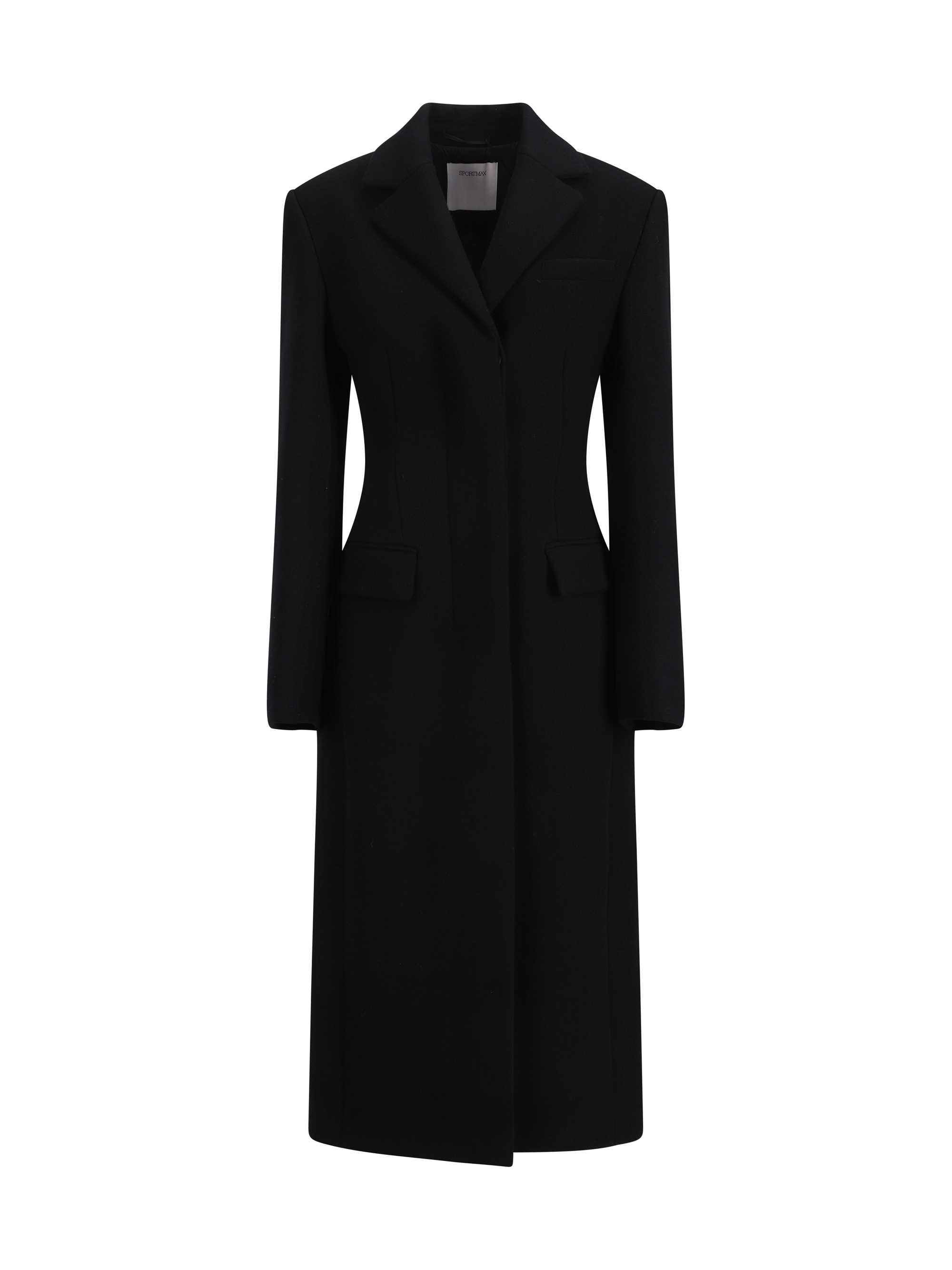 Wool Arabia Coa by Max Mara Sportmax, classic lapels, front concealed button closure, two front welt pockets with flaps, one breast flap pocket, one back slit, fitted waist, monochrome pattern, regular fit.