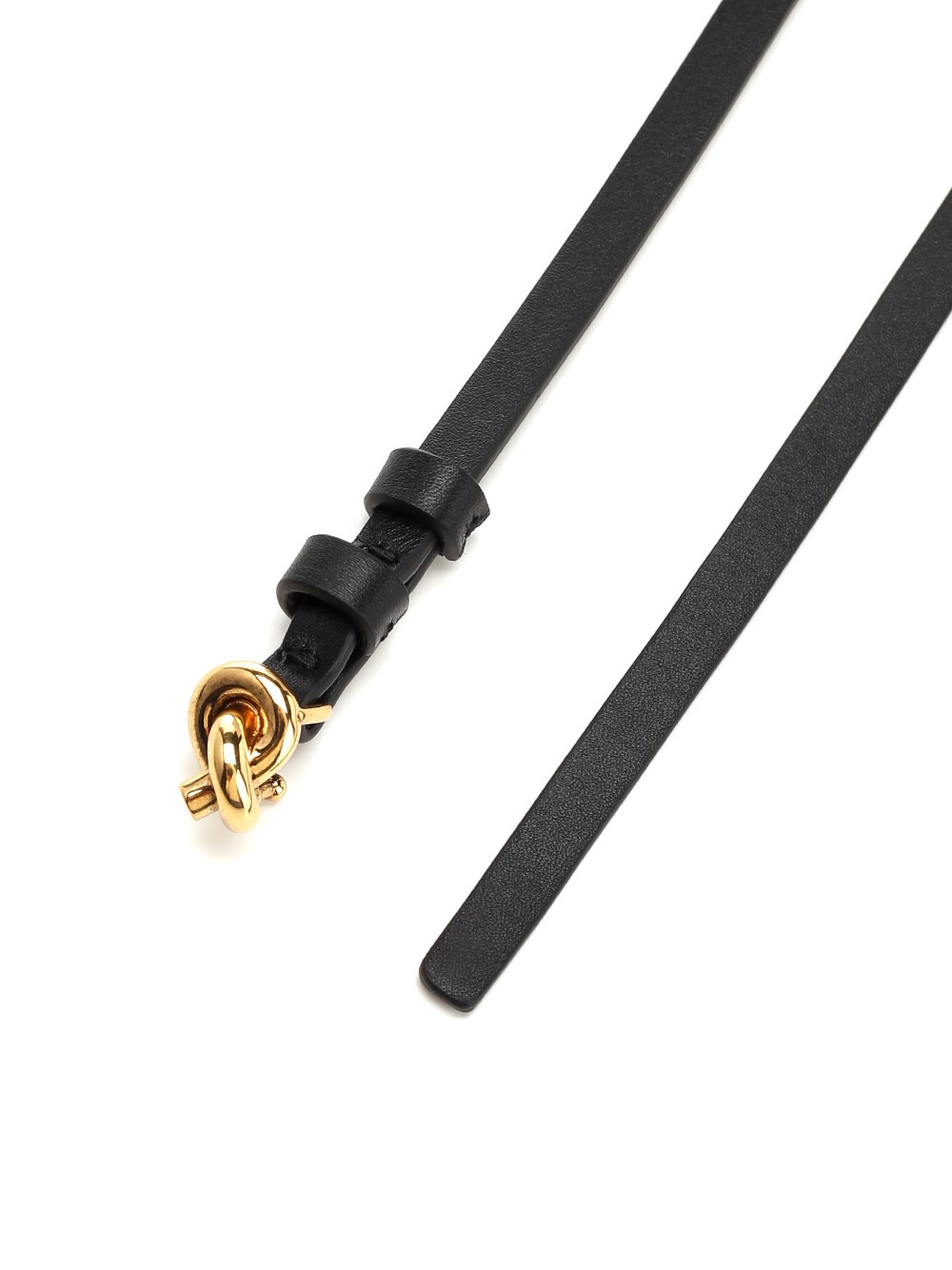 SKU B4104460 Long black leather belt with shiny gold metal "Knot" buckle from Bottega Veneta. COD. 776108/VALKO1019