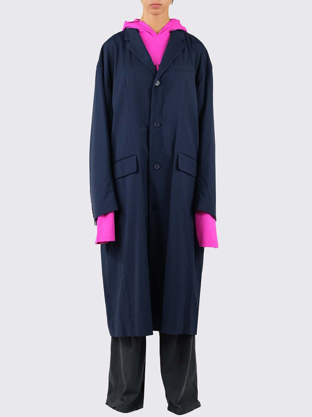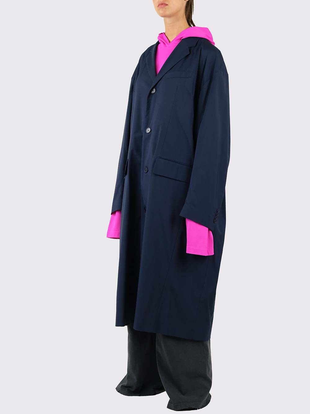 SKU B1500042 Blue tailored coat from Balenciaga with loose fit, front buttons and long design. COD. 663044/TKO294100