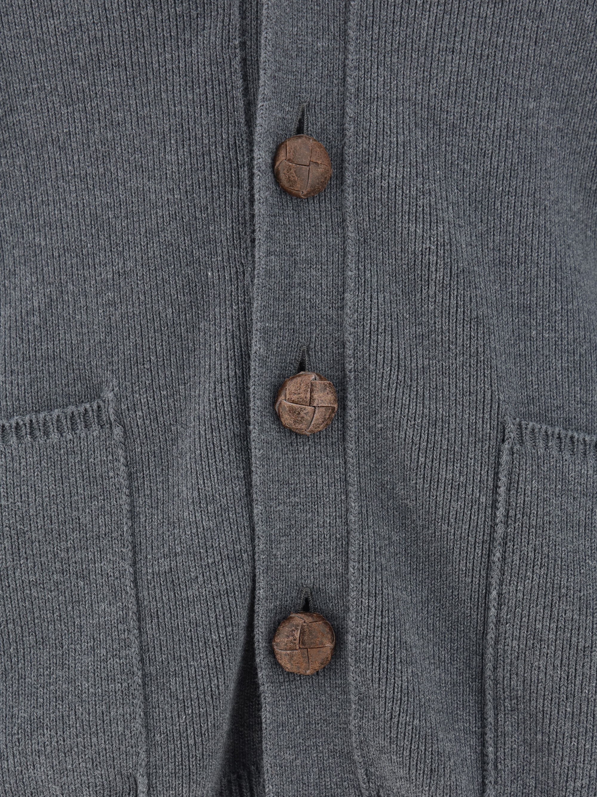 Cotton Cardigan by Golden Goose, button front closure, ribbed cuffs, v-neck with ribbed trim, ribbed hem, iconic contrasting embroidered monogram at back, two side patch pockets, monochrome pattern, regular fit.