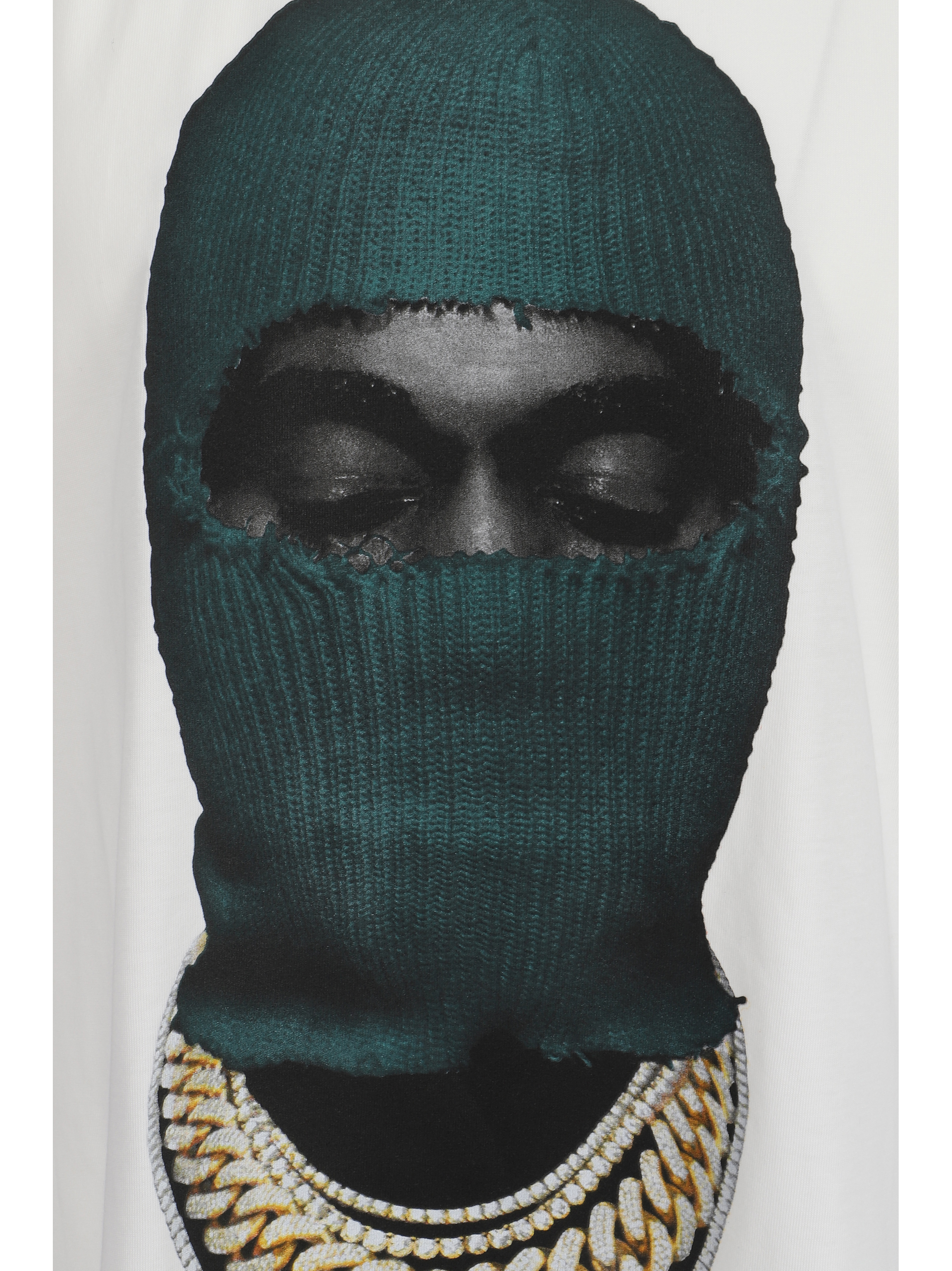 Cotton Mask20 Green T-Shirt by Ih Nom Uh Nit, ribbed crew neck, maxi print on front, contrasting iconic brand monogram on back, monochrome pattern, regular fit.