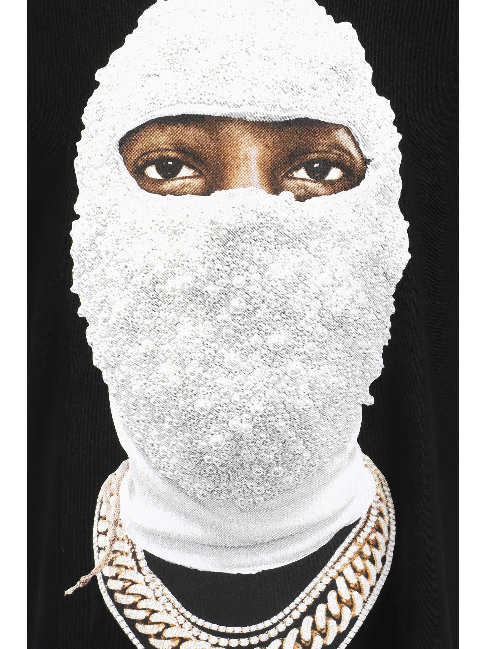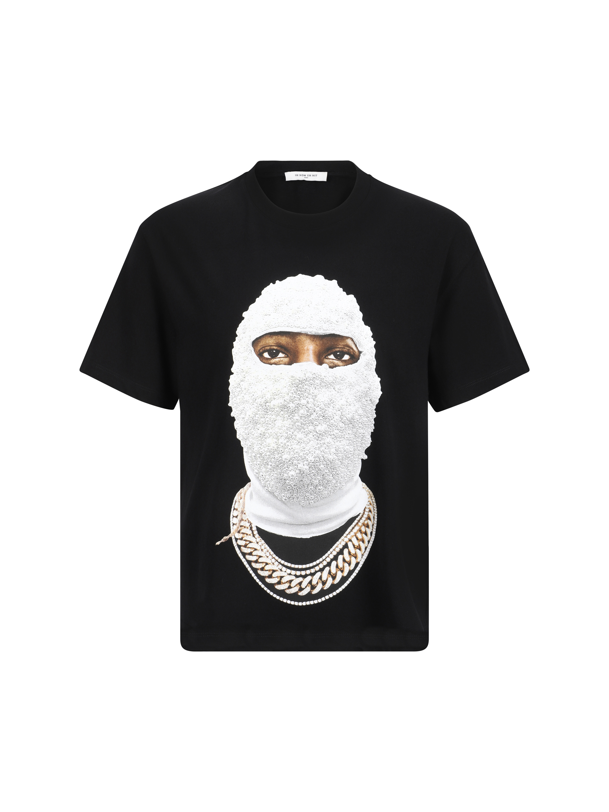 Cotton Mask Future T-Shirt by Ih Nom Uh Nit, ribbed crew neck, maxi print on front, contrasting iconic brand monogram on back, monochrome pattern, regular fit.