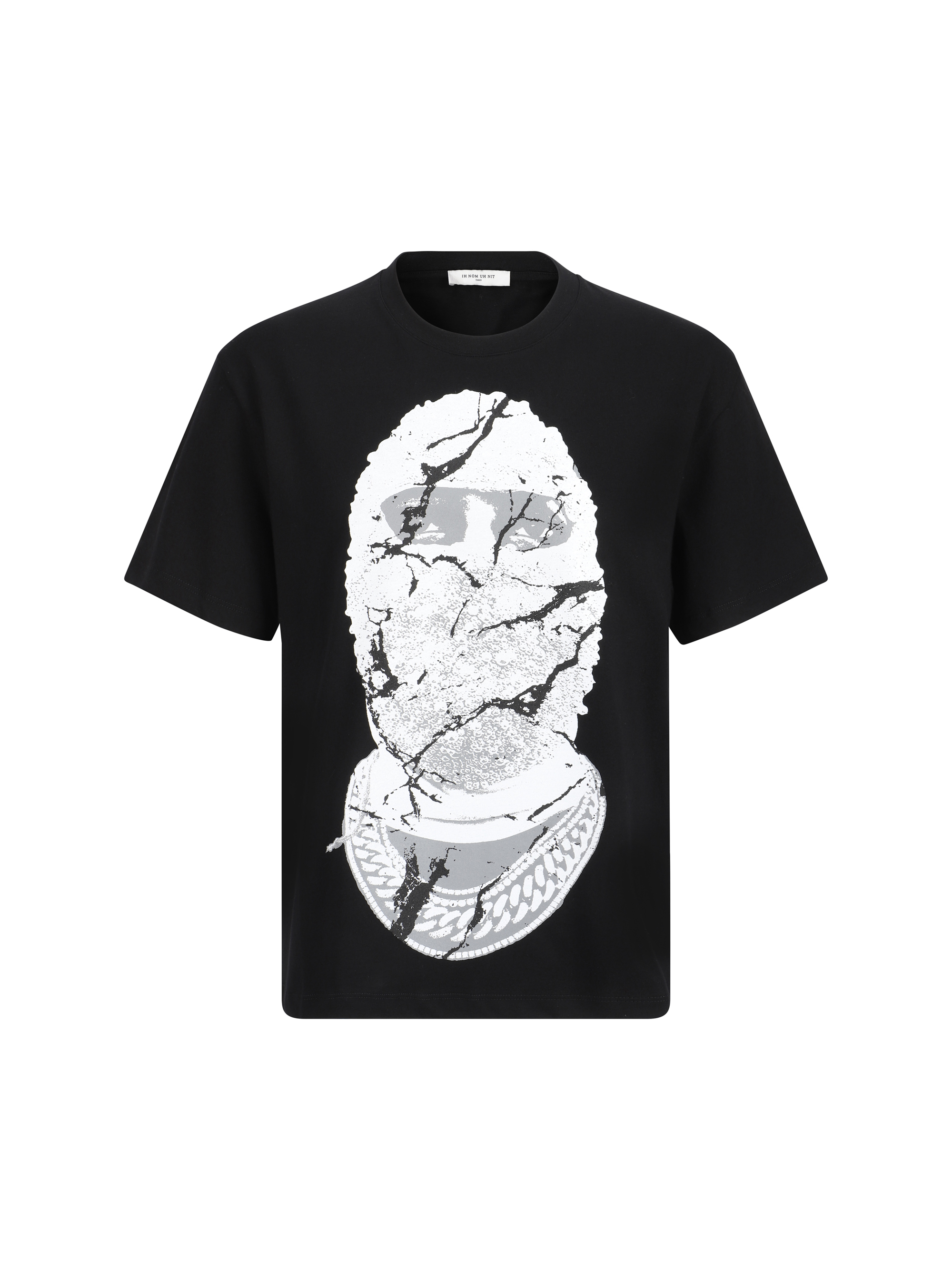 Cotton Mask Marble Effect T-Shirt by Ih Nom Uh Nit, ribbed crew neck, maxi print on front, contrasting iconic brand monogram on back, monochrome pattern, regular fit.