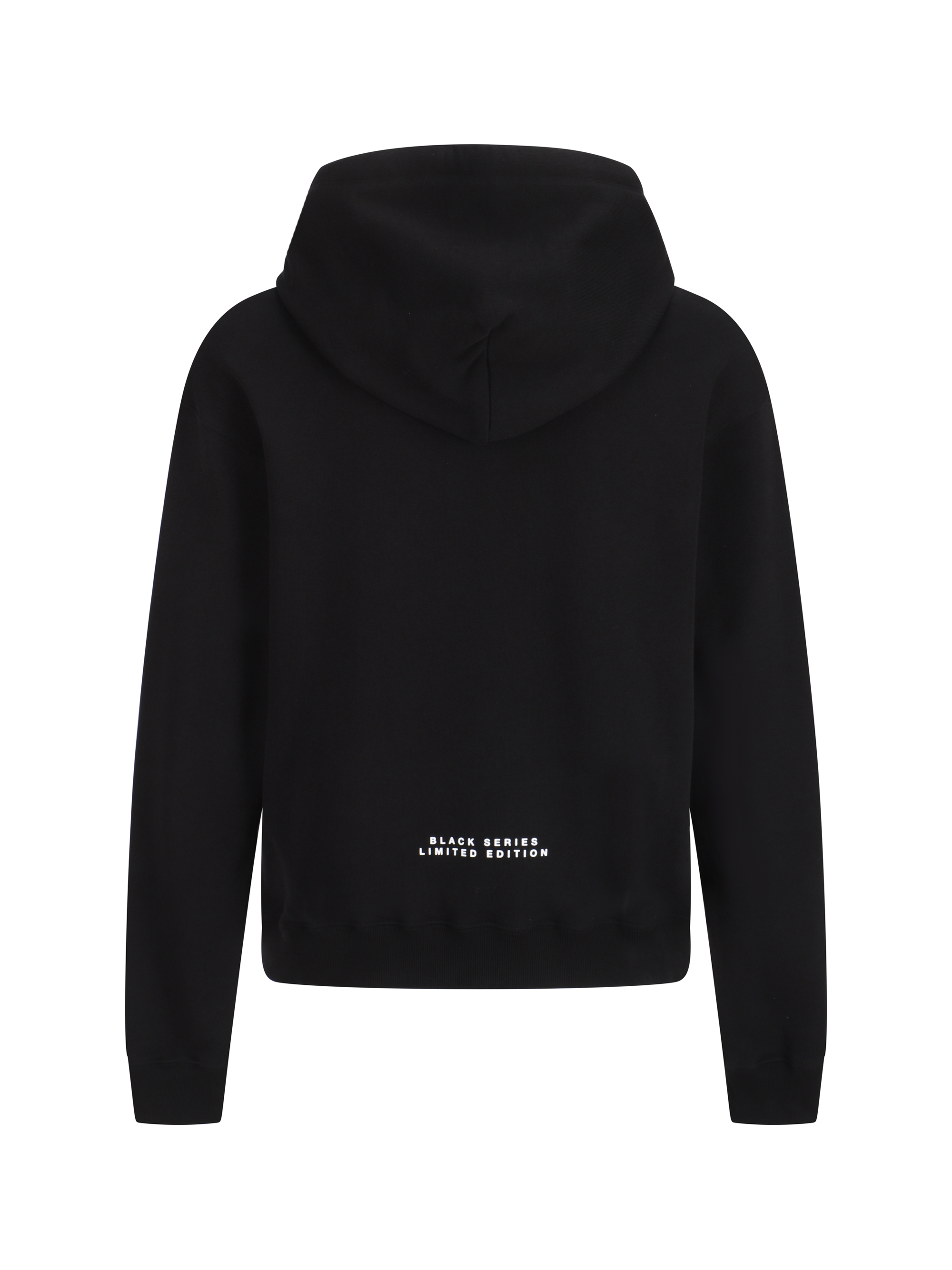 Cotton Black Mask Hoodie by Ih Nom Uh Nit features hood with adjustable drawstring, maxi print on front with contrasting iconic brand monogram, front kangaroo pocket, ribbed cuffs, ribbed hem, monochrome design, regular fit.